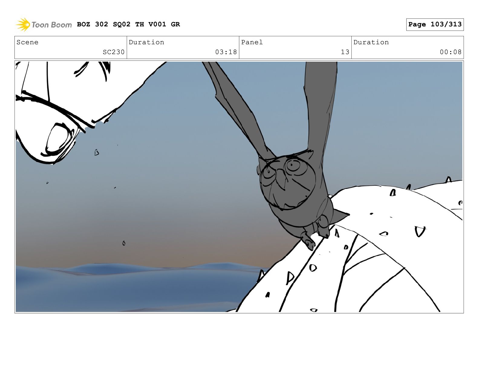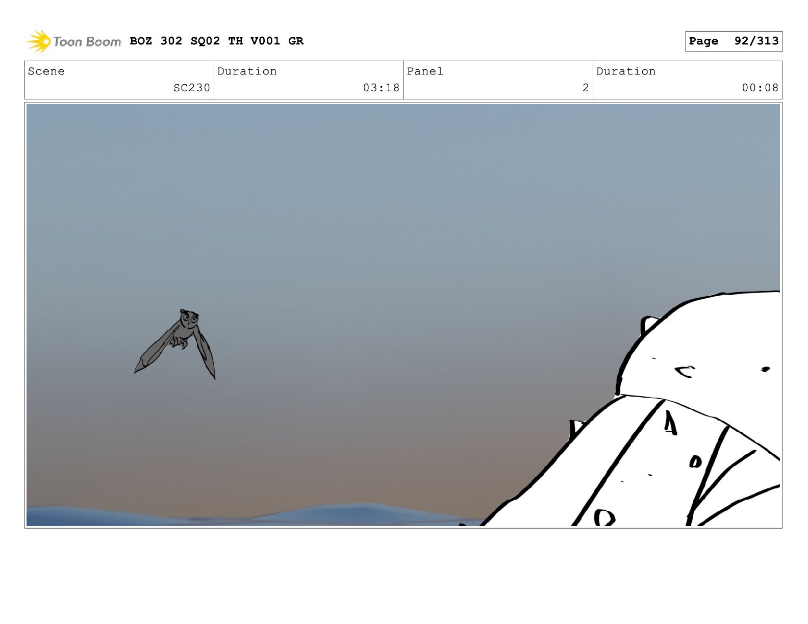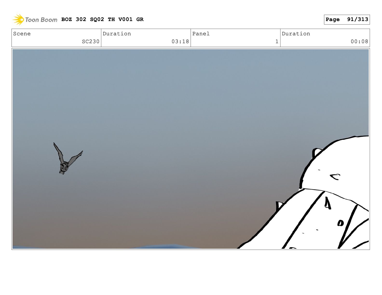Scene SC040 Duration 02:16 Panel 4 Duration 00:20 BOZ 302