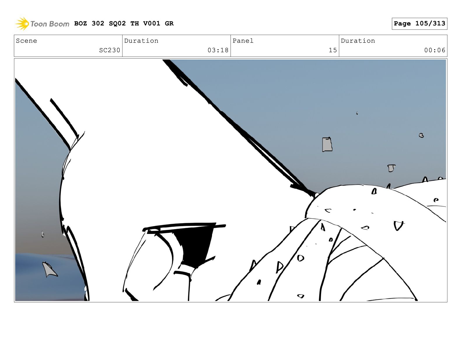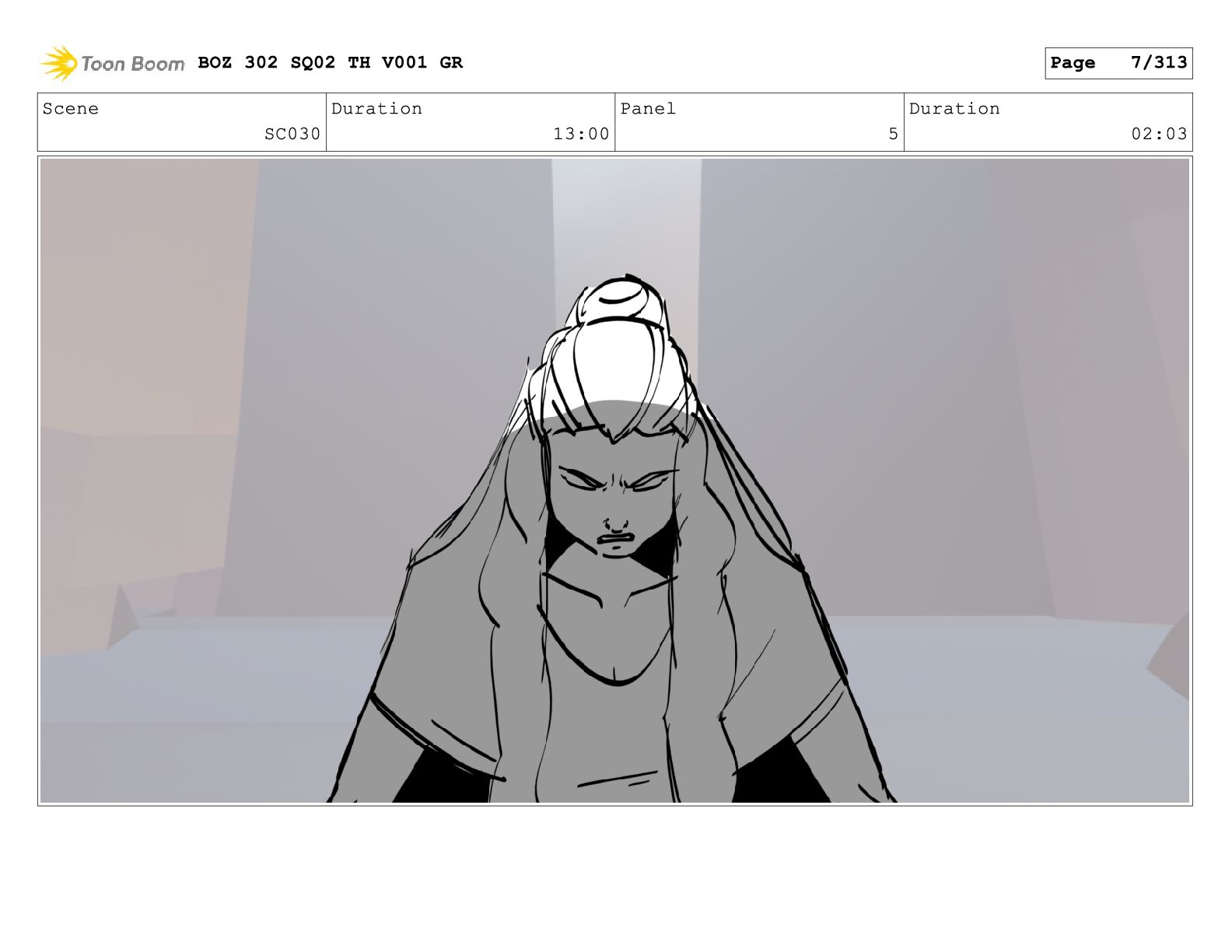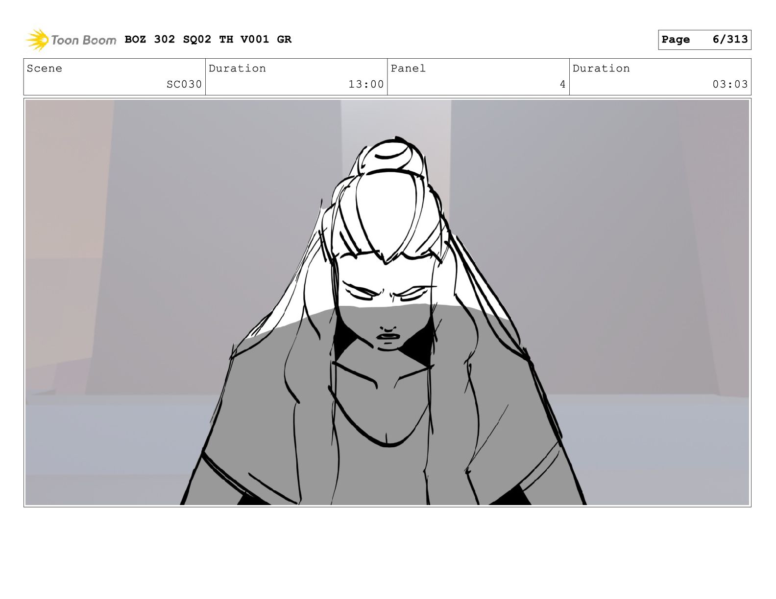 Scene SC030 Duration 13:00 Panel 7 Duration 00:15 BOZ 302