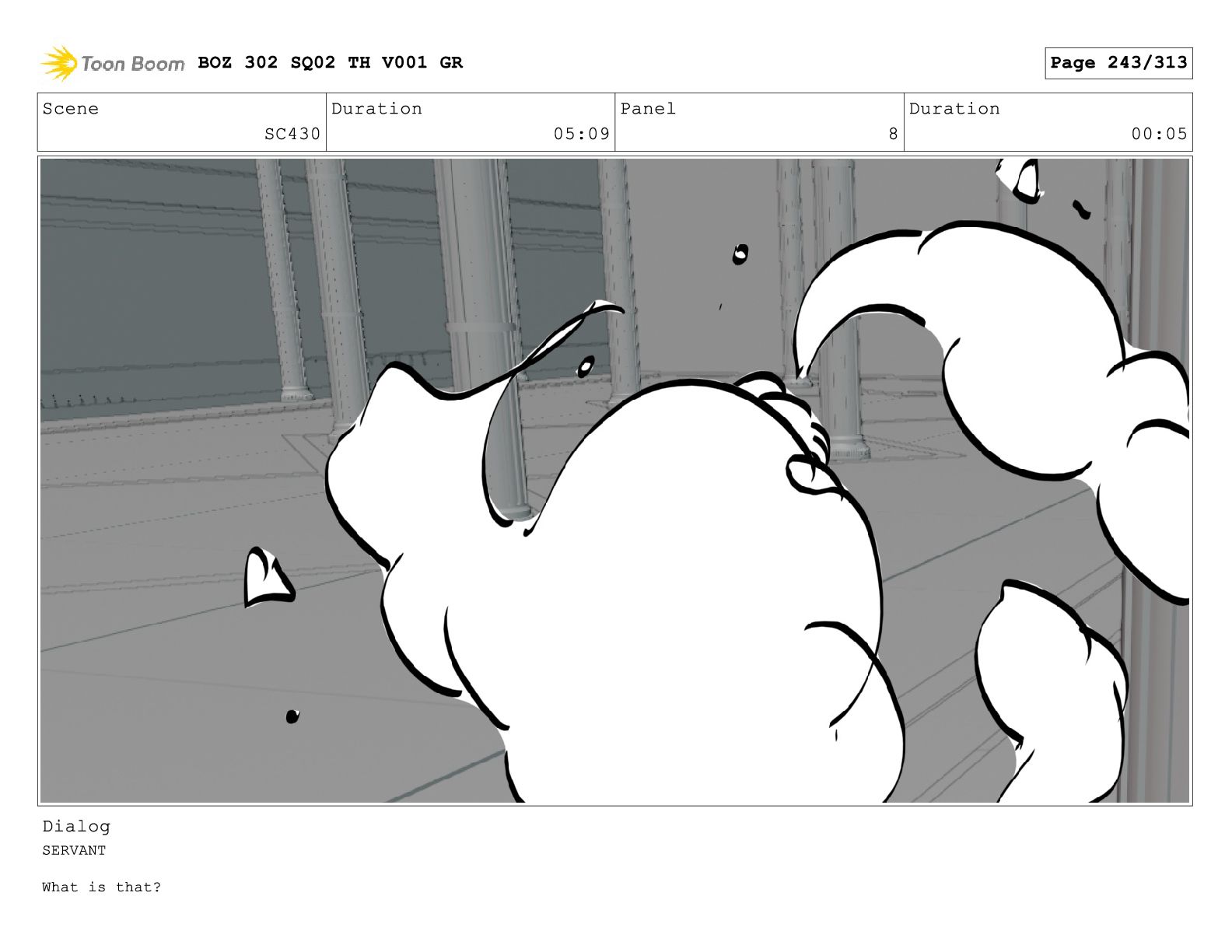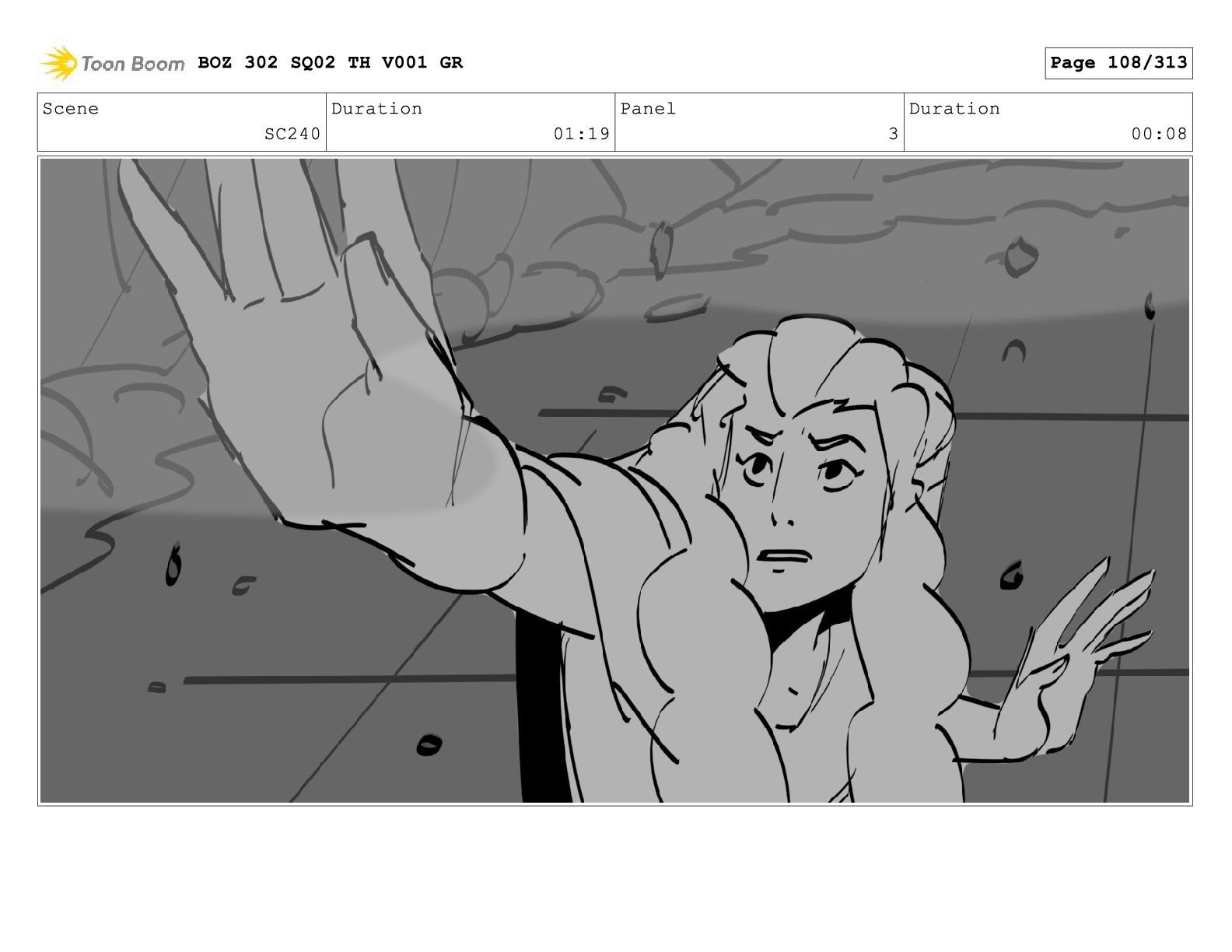 Scene SC480 Duration 01:07 Panel 3 Duration 00:08 BOZ 302