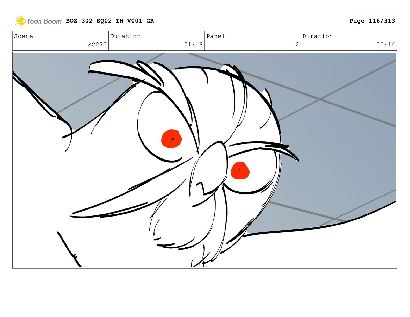 Scene SC040 Duration 02:16 Panel 2 Duration 00:16 BOZ 302