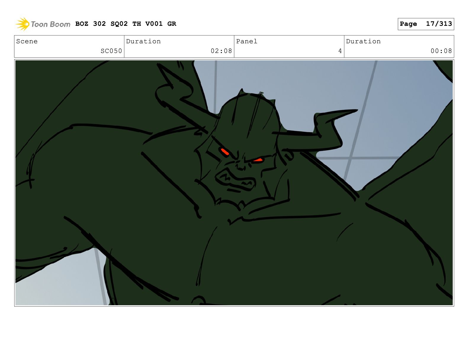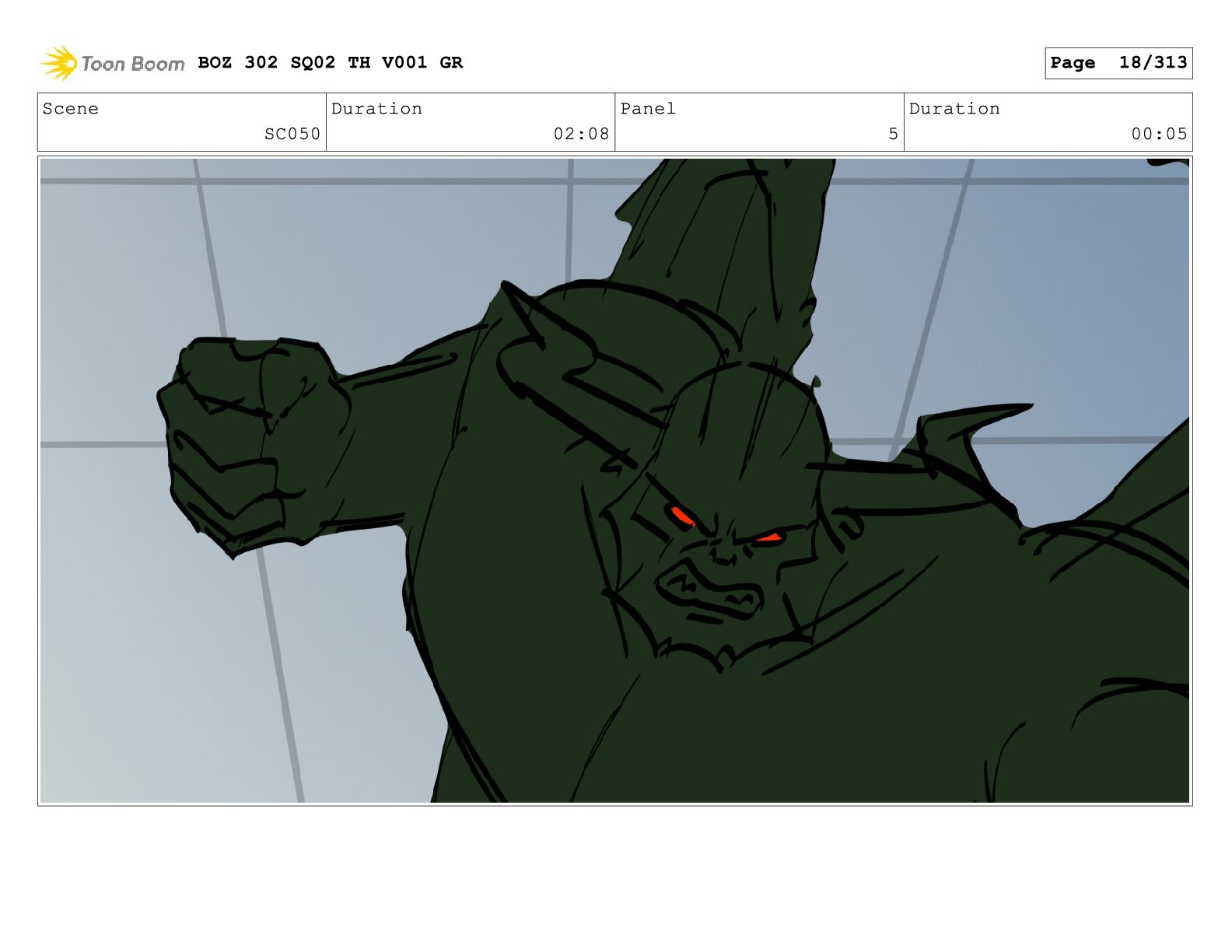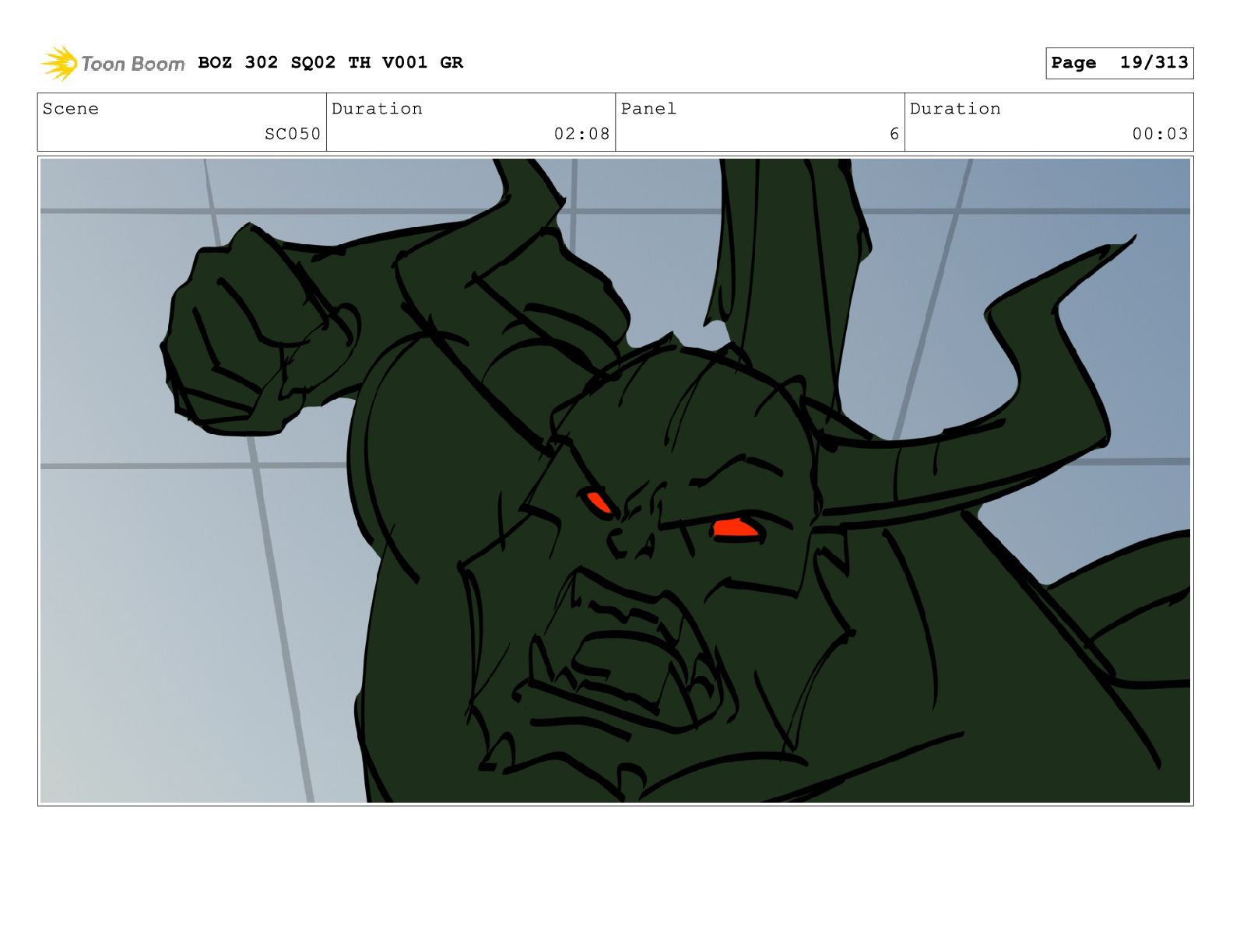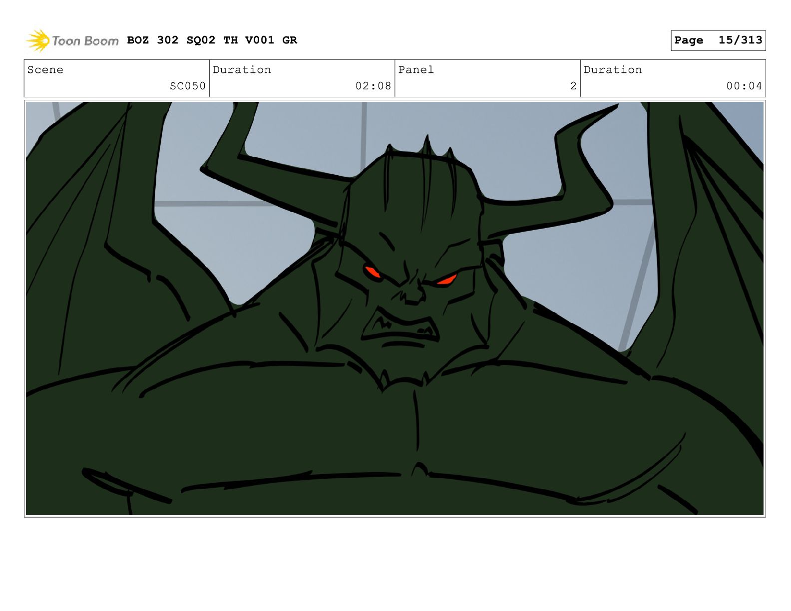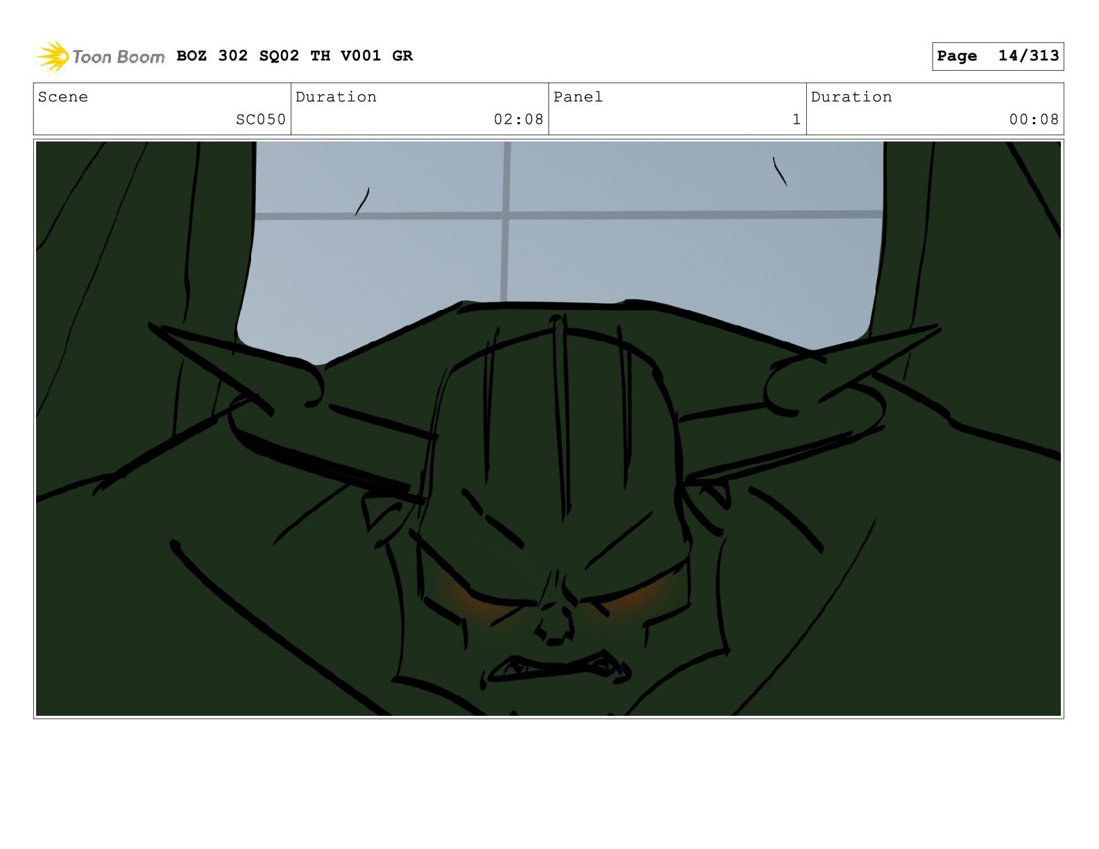 Scene SC050 Duration 02:08 Panel 1 Duration 00:08 BOZ 302