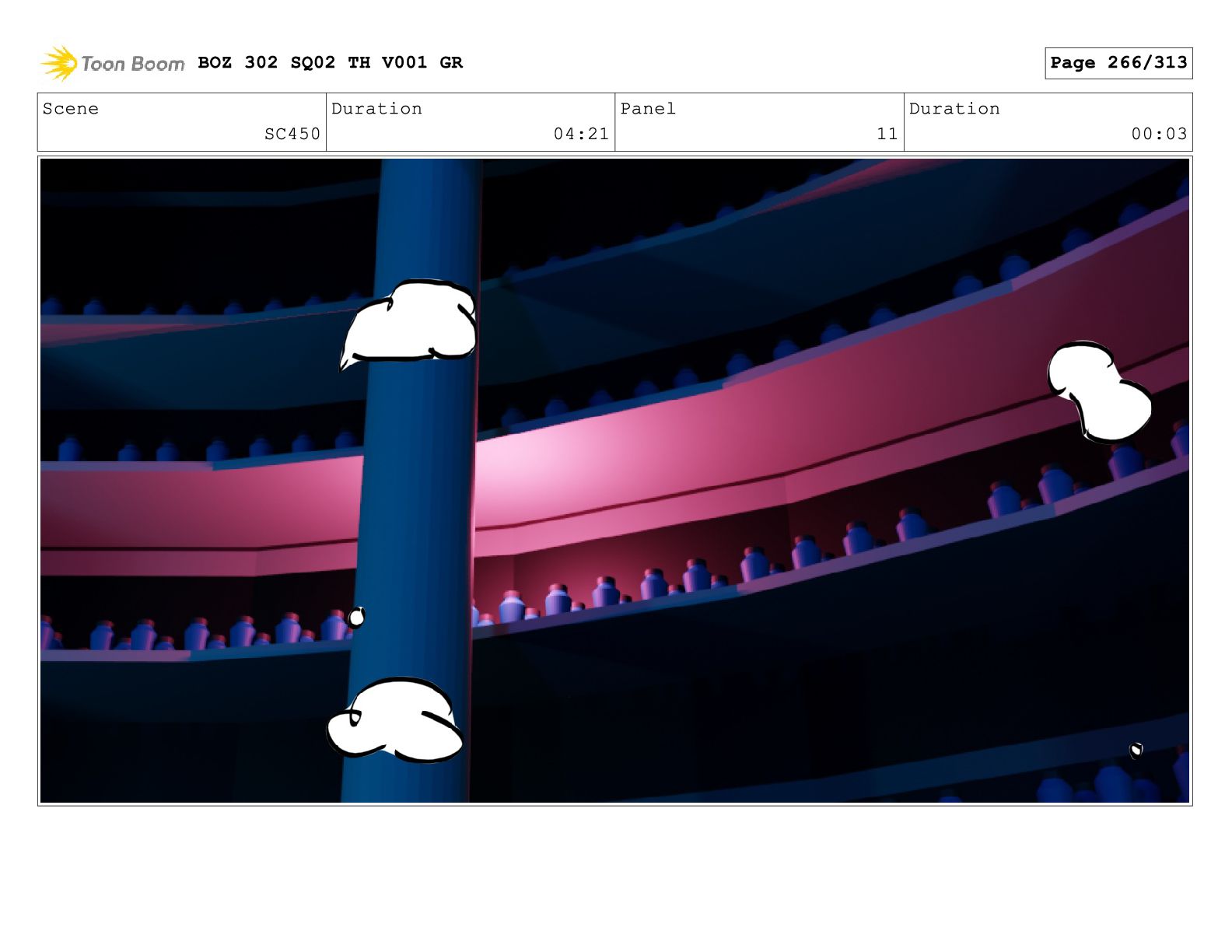 Scene SC450 Duration 04:21 Panel 11 Duration 00:03 BOZ 302