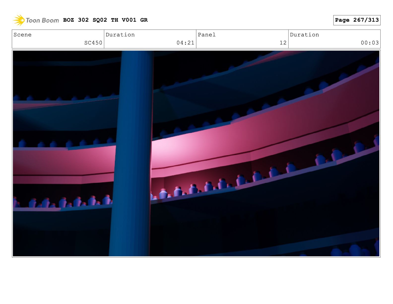 Scene SC450 Duration 04:21 Panel 12 Duration 00:03 BOZ 302