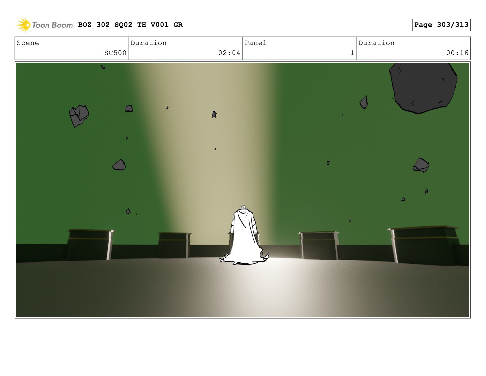 Scene SC500 Duration 02:04 Panel 1 Duration 00:16 BOZ 302