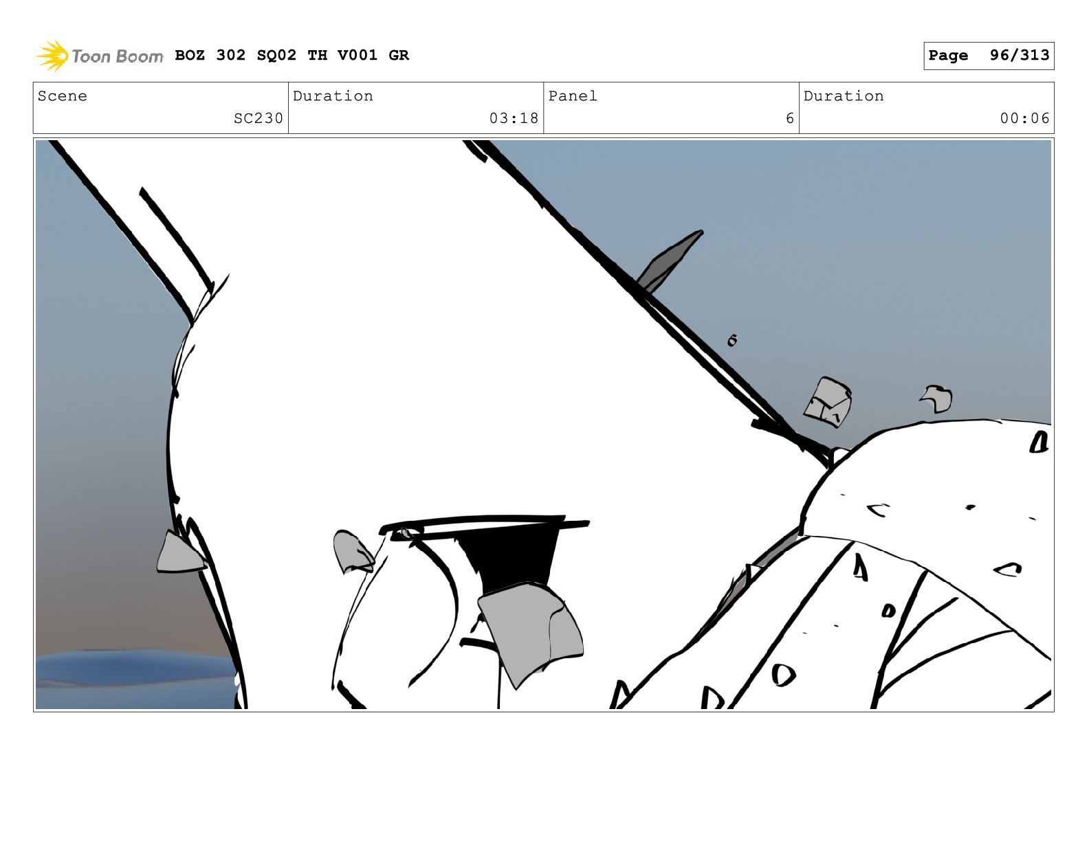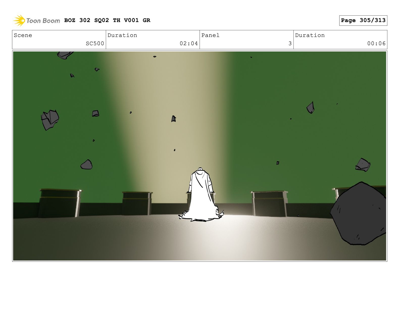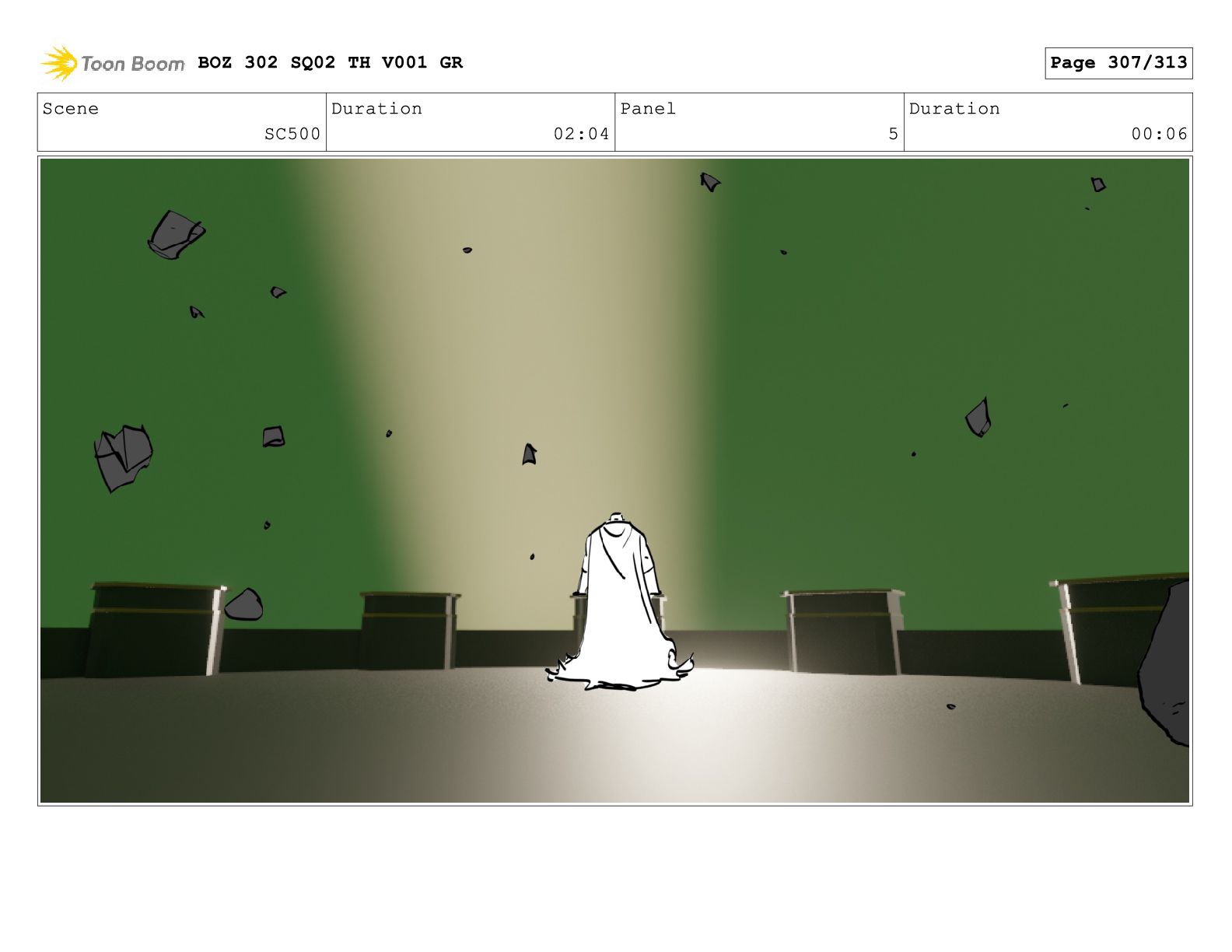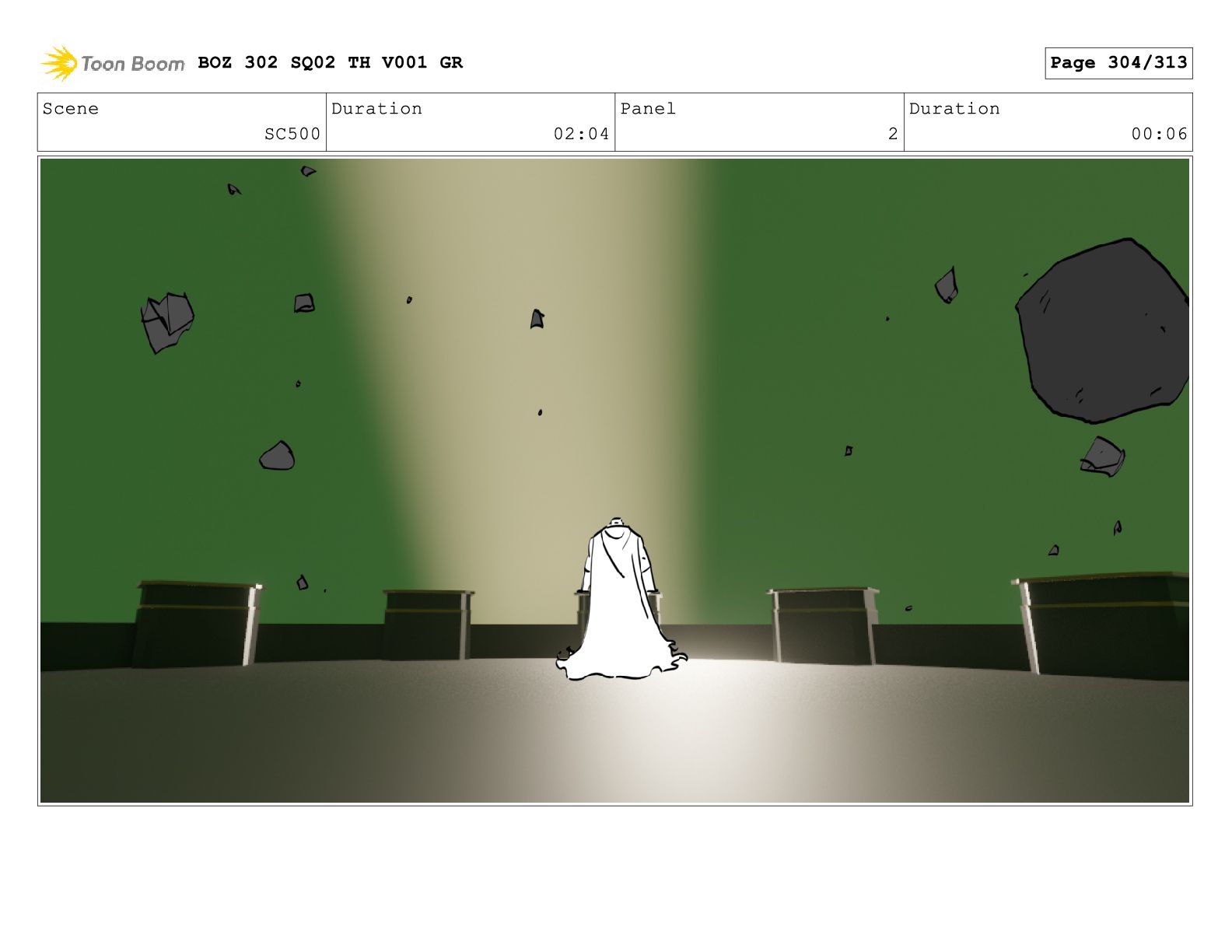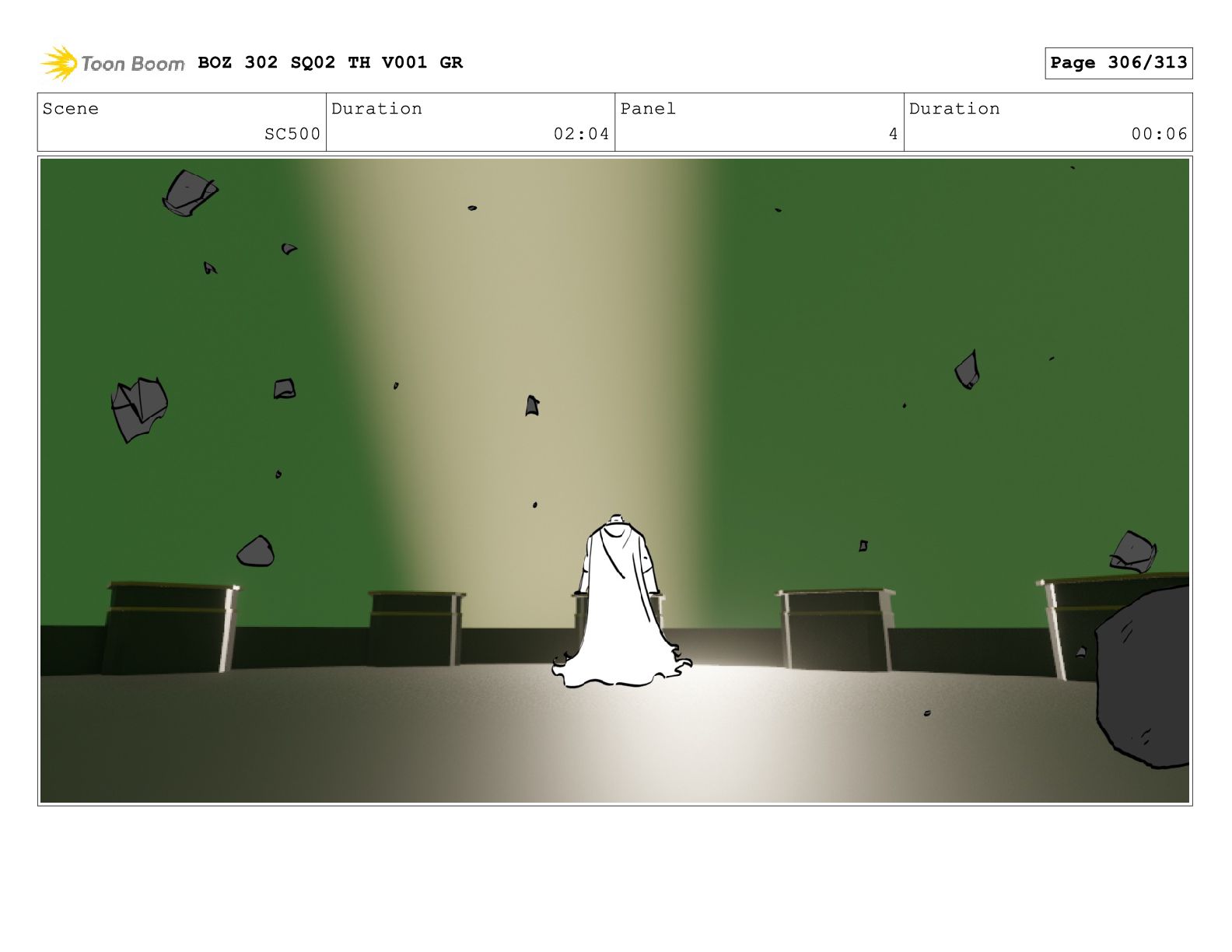 Scene SC500 Duration 02:04 Panel 6 Duration 00:06 BOZ 302
