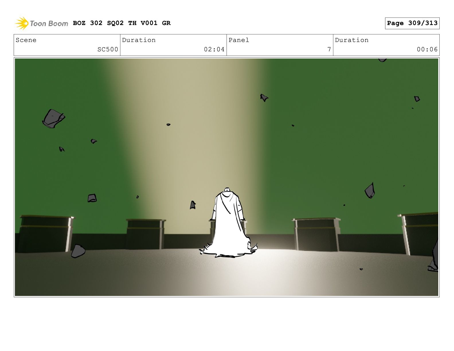 Scene SC500 Duration 02:04 Panel 7 Duration 00:06 BOZ 302