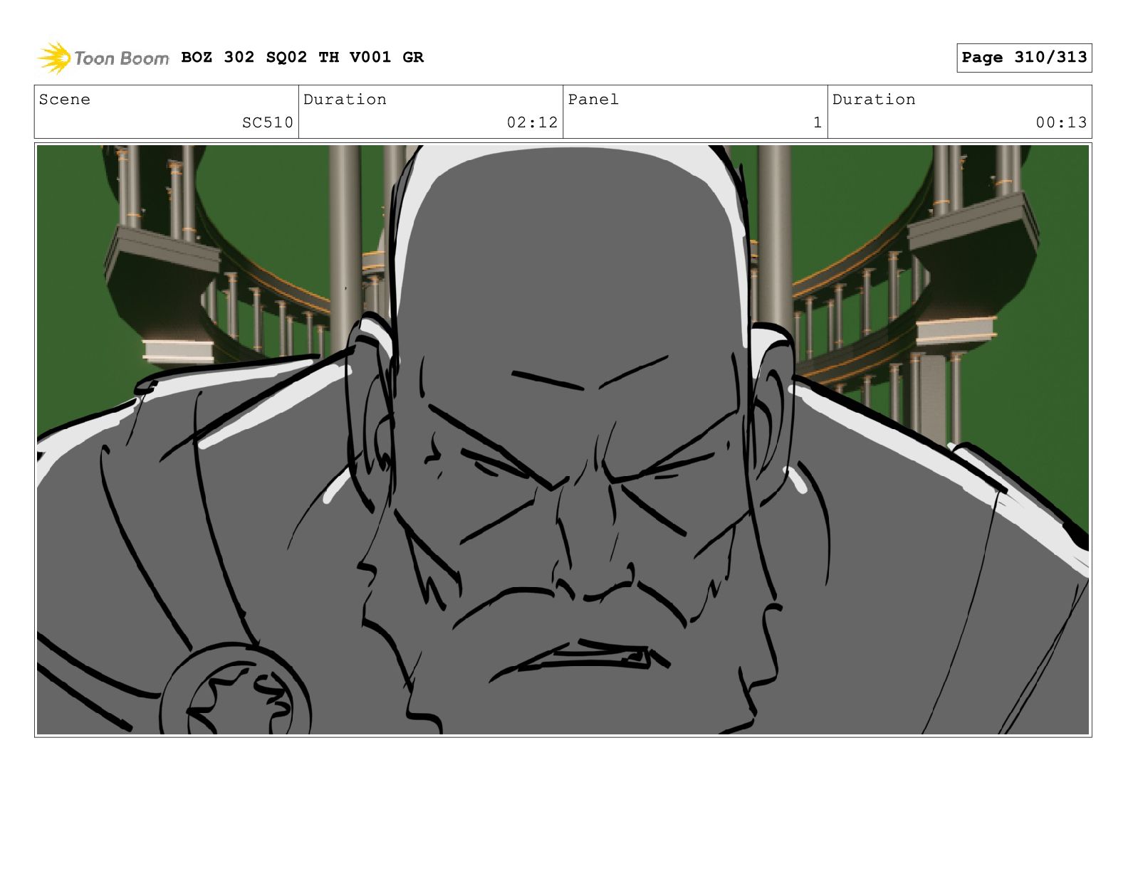Scene SC510 Duration 02:12 Panel 1 Duration 00:13 BOZ 302