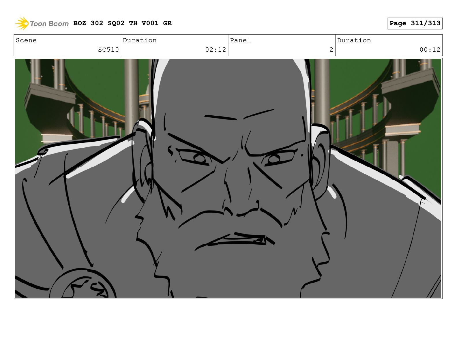 Scene SC510 Duration 02:12 Panel 2 Duration 00:12 BOZ 302