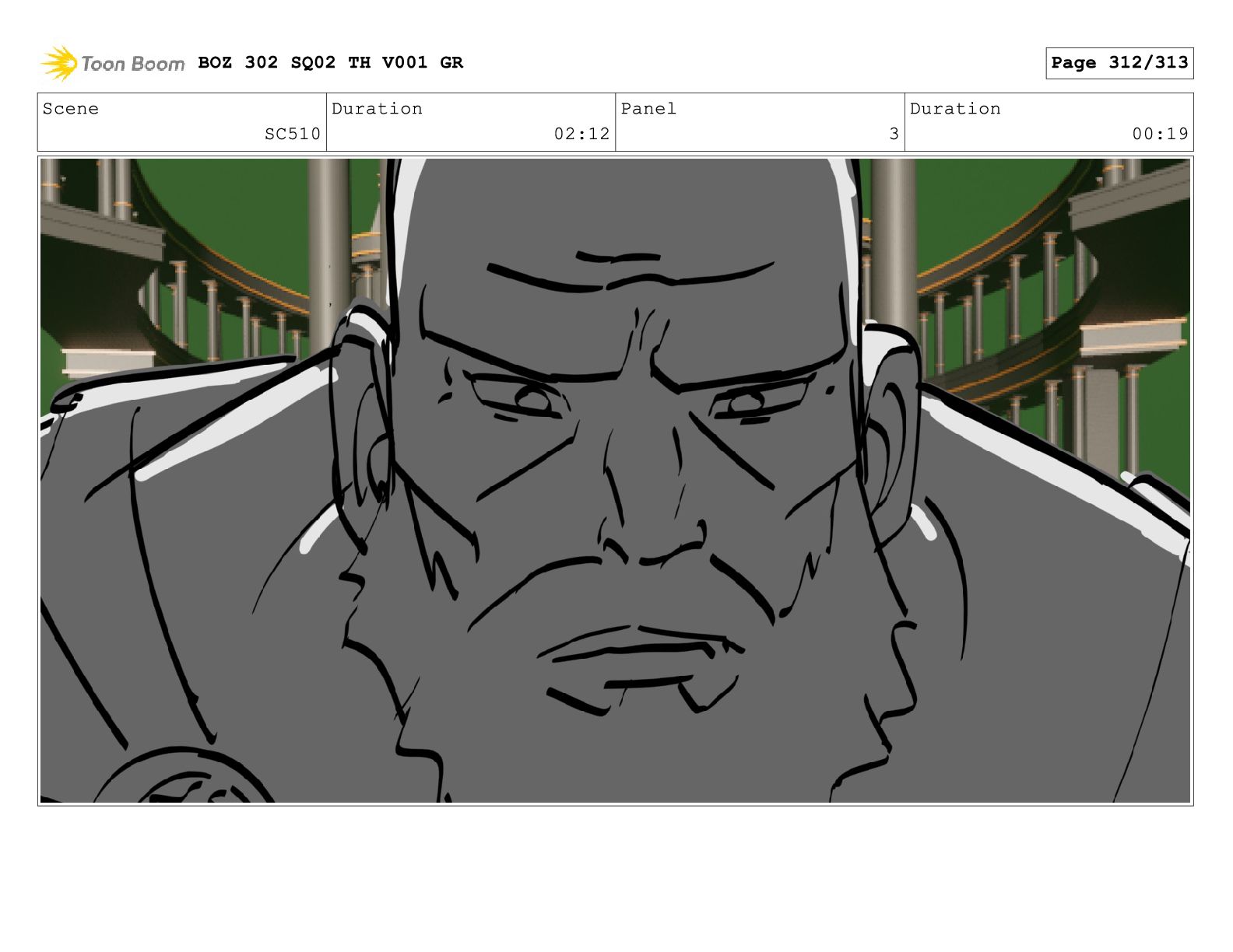 Scene SC510 Duration 02:12 Panel 3 Duration 00:19 BOZ 302