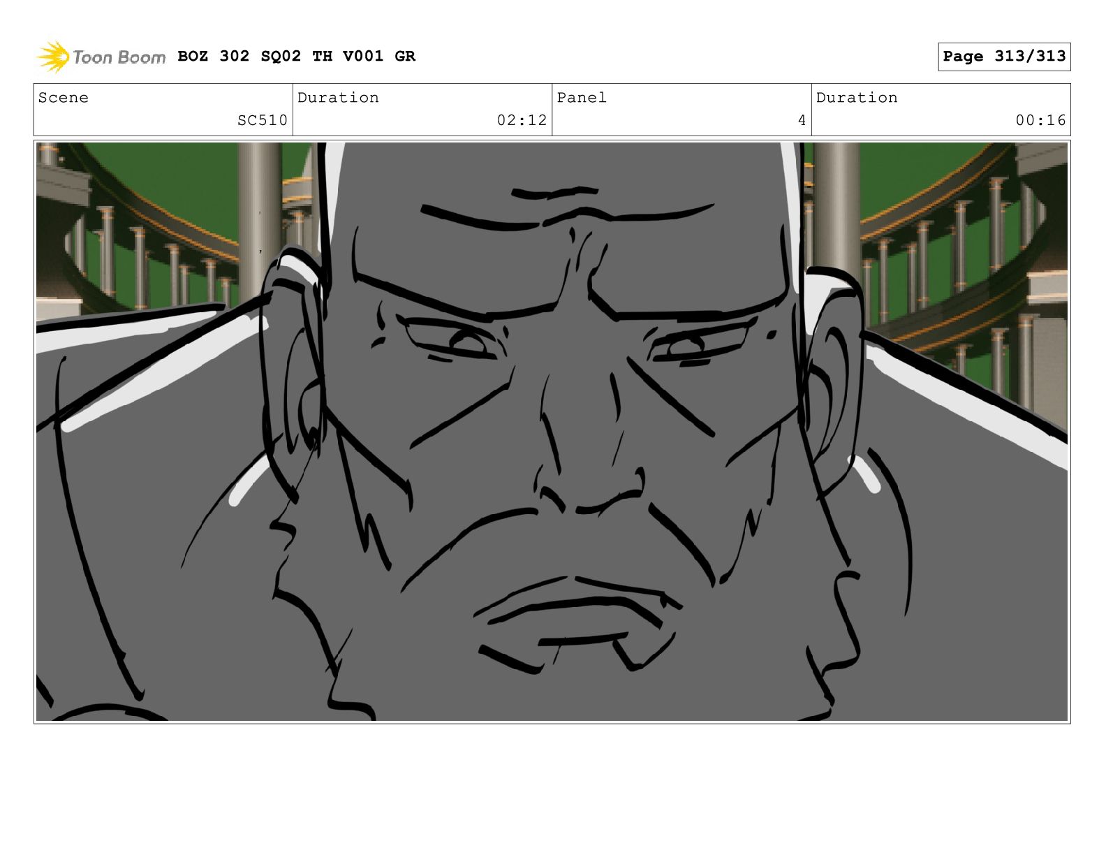 Scene SC510 Duration 02:12 Panel 4 Duration 00:16 BOZ 302
