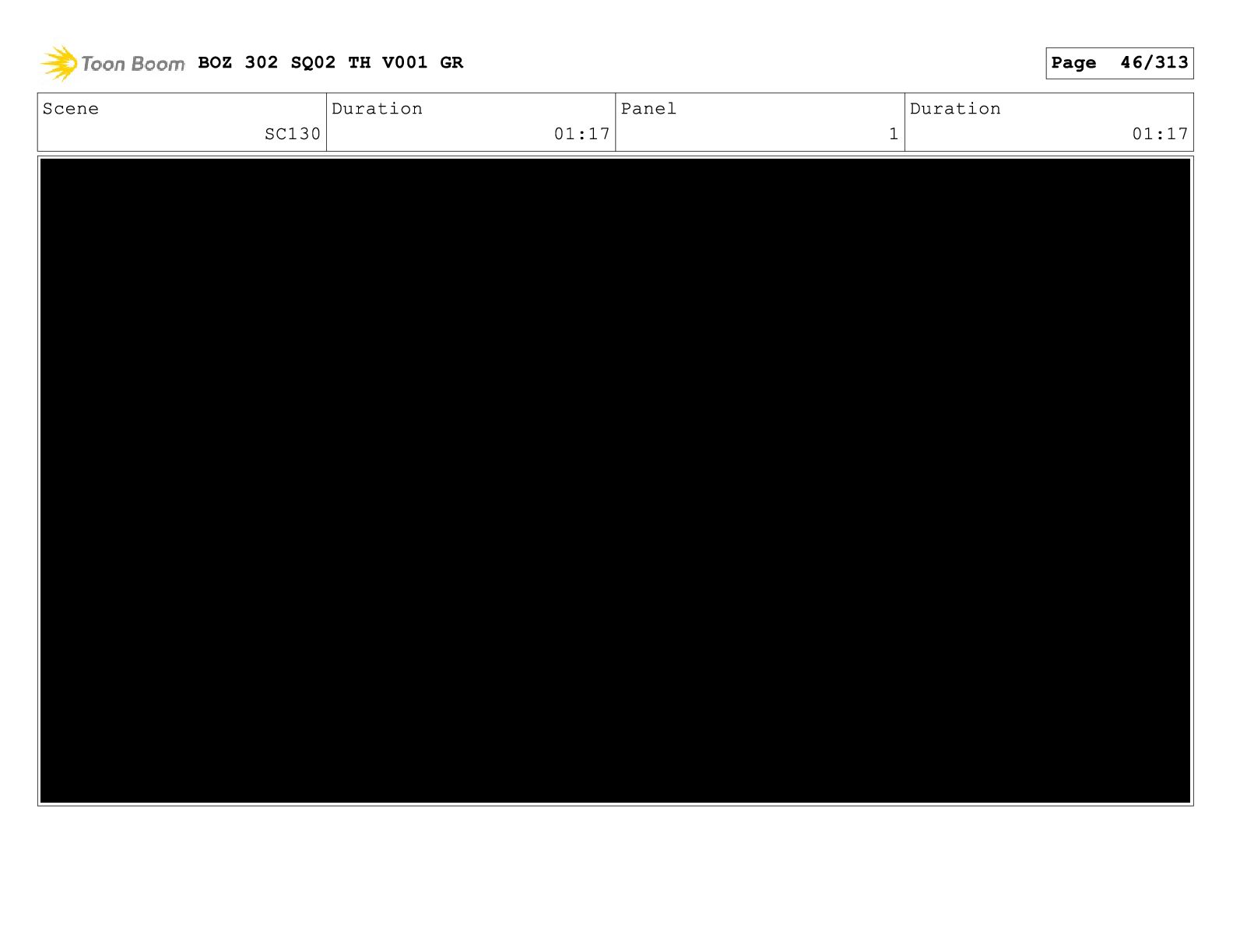 Scene SC030 Duration 13:00 Panel 3 Duration 02:17 BOZ 302
