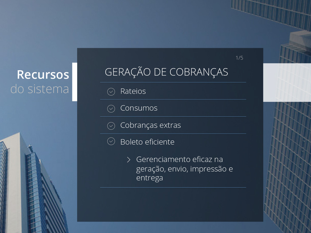 3. GERAÇÃO DE COBRANÇAS Rateios Consumos Cobranças extras Boleto eficiente Gerenciamento