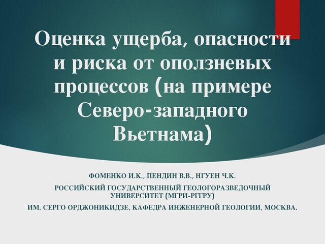 в районе северо- западный Лаокай, на информационные классы и вес этих классов Фактор W j Классы Количество выявленных оползней Площадь (км2) x ij 1. Крутизна склонов (градусы) <15 92 382,1883 0,451 15-35 203 1207,622 0,315 > 35 45 360,4799 0,234 Сумма 340 1950 1 2. Горизонтальное расчленение рельефа (км/км2) <0.3 42 546,25 0,150 0.3 – 0.78 254 1207,618 0,412 >0.78 44 196,426 0,438 Сумма 340 1950 1 3. Вертикальное расчленение рельефа (км/км2) < 600 69 287,698 0,470 600-1250 249 1436,242 0,340 >1250 22 226,362 0,190 Сумма 340 1950 1 4. Литологические разности грунтов Глинистые сланцы, песчаники и алевролиты 37 204,4368 0,325 Биотитовые сланцы, двуслюдяные сланцы, графитовые сланцы, амфиболиты 106 478,1887 0,397 Интрузивные породы: диориты, гранодиориты, граниты, субщелочные граносиениты 197 1267,818 0,278 Сумма 340 1950 1 5. Расстояние от активных разломов (м) >3000 175 1166,928 0,257 <3000 67 428,982 0,268 Зона разлома 98 354,36 0,475 Сумма 340 1950 1 6.Гидрогеологические условия Мало обводненные массивы грунтов 146 747,06 0,398 Среднеобводненные массивы грунтов 161 933,883 0,352 Сильно обводненные массивы грунтов 33 269,355 0,250 Сумма 340 1950 1 7. Количество осадков (ММ/1 год) <2000 168 854,275 0,389 2000 - 2800 111 592,301 0,371 > 2800 61 503,714 0,240 Сумма 340 1950 1 8.Тип растительности Лесные массивы и с лесопосадки 60 581,663 0,201 Земли хозяйственного назначения 147 665,73 0,430 Растительность практически отсутствует 133 702,754 0,369 Сумма 340 1950 1