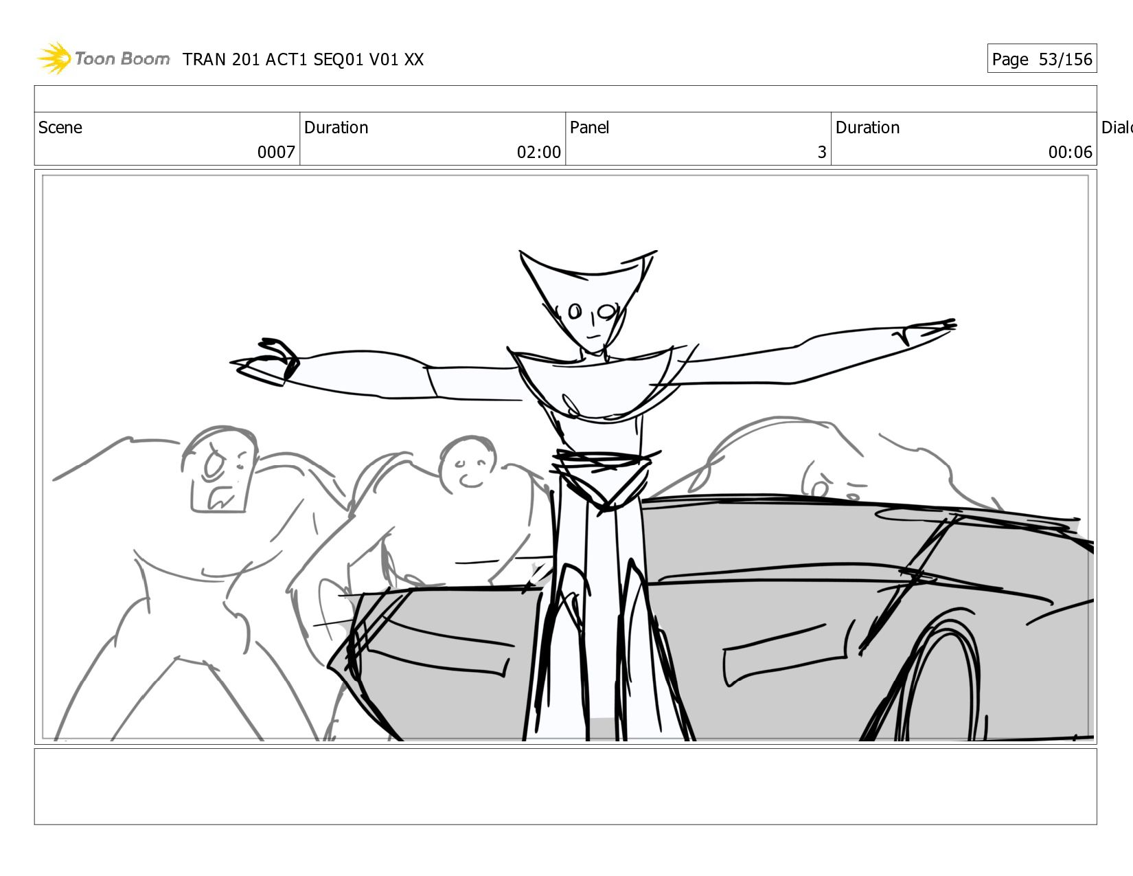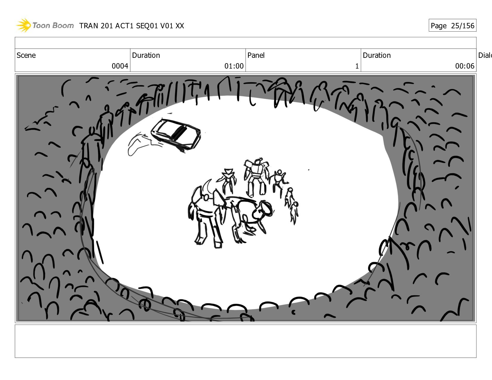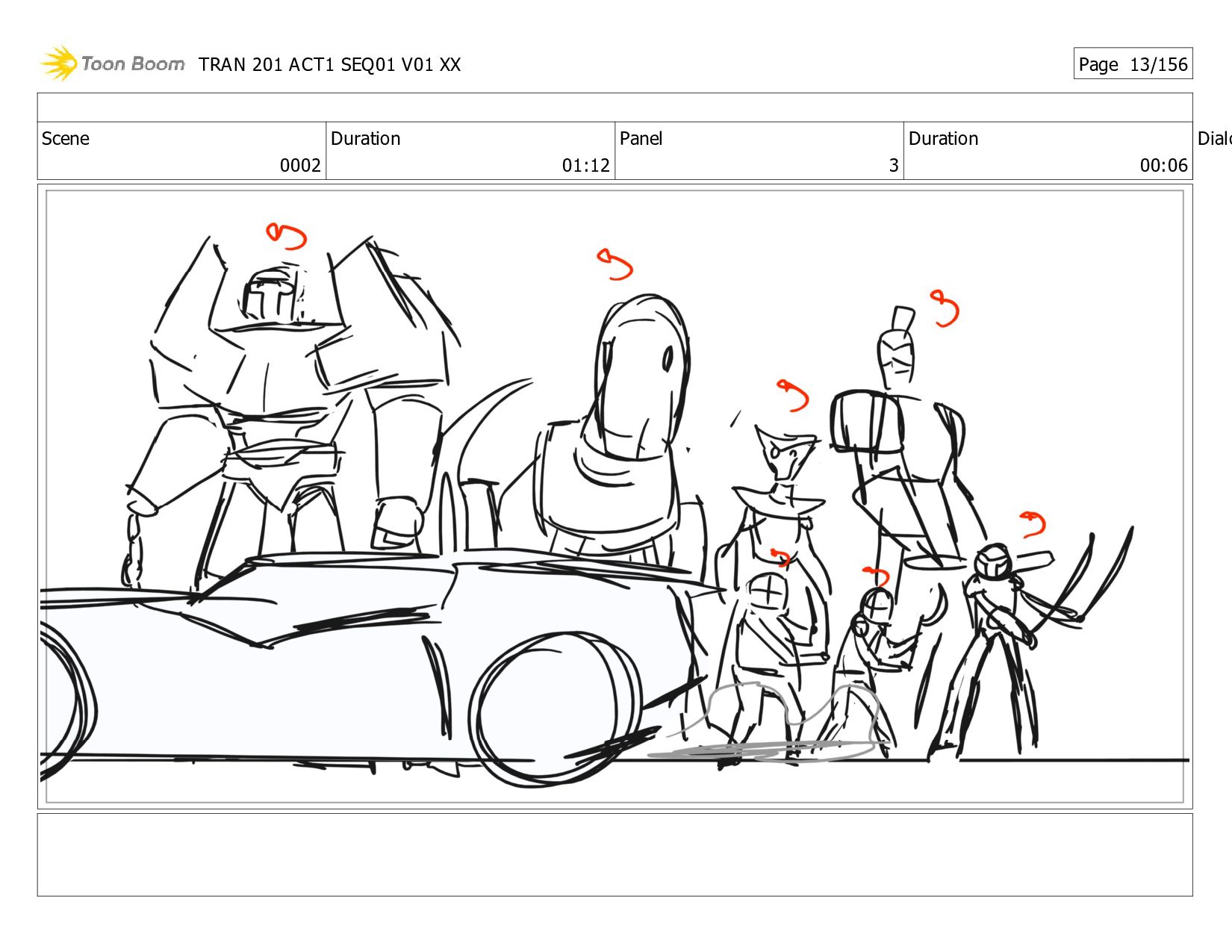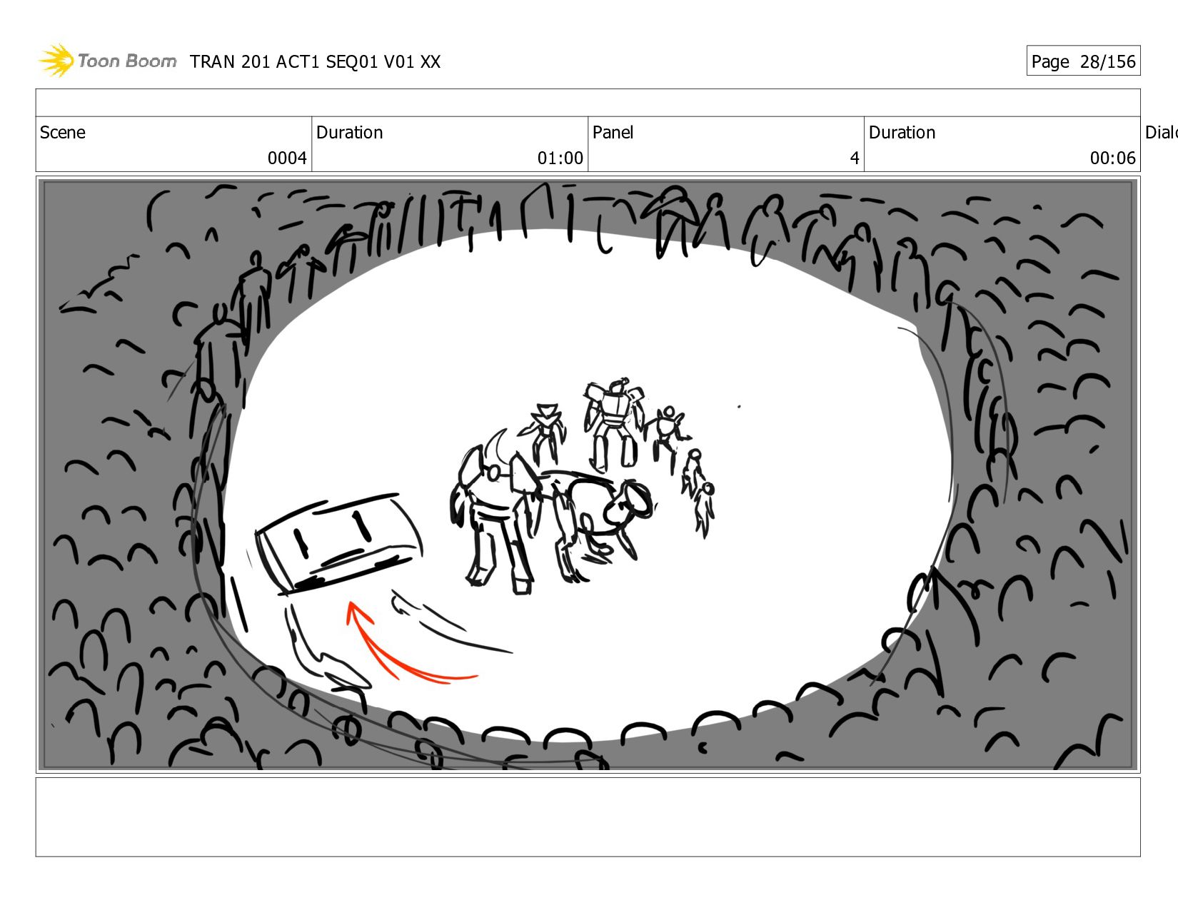 Notes Twitch and Megs grab Alex, Dot, JB, and Thrash and <HOVER> * up. NS grabs and airlifts HT. Bee <XFORMS> to V-Mode, does donuts to attract zombies to his Spark, then speeds out! The * zombies race out of the base after him! After a tense beat, Bee races back in, <XFORMING> as he <SLAMS> the door shut! The <THUDDING> of Sparkless bombards the closed door. TRAN 201 ACT1 SEQ01 V01 XX Page 1/156