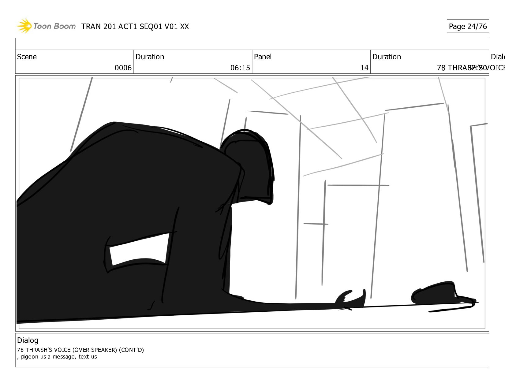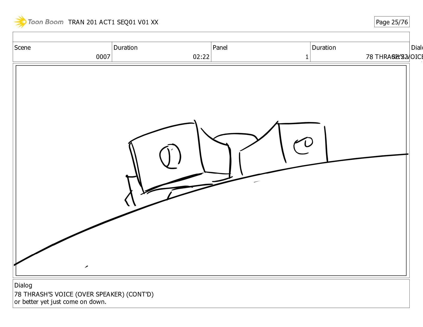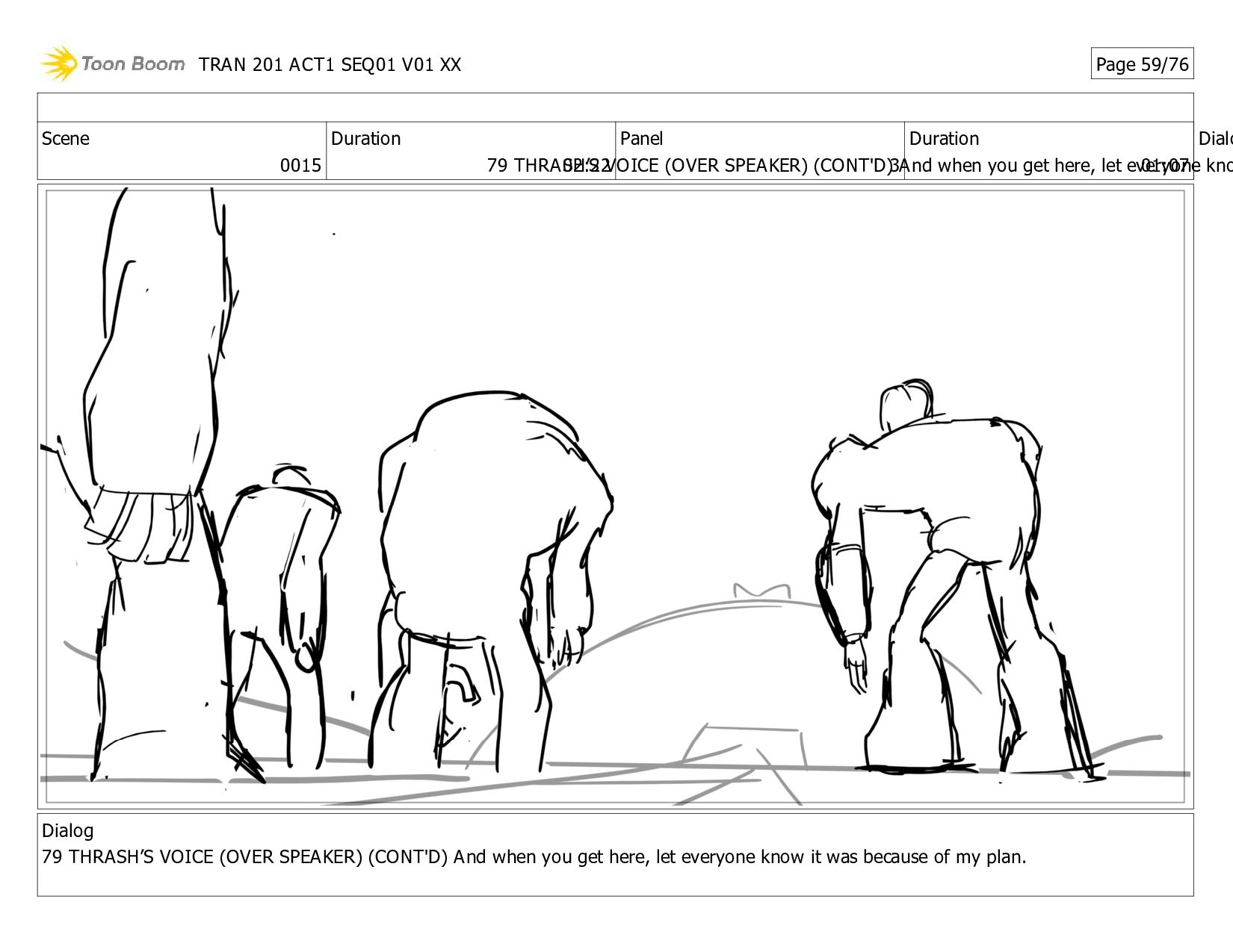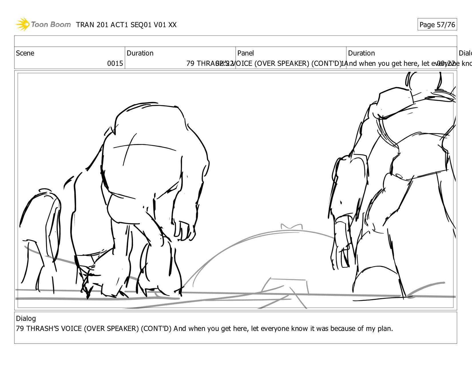 THRASH’S VOICE (OVER SPEAKER) (CONT OK the secure comms, they should be * here i r Dialog 80 THRASH’S VOICE (OVER SPEAKER) (CONT'D) (an aside caught on mic) OK, people, I put a call out over the secure comms, they should be * here in no time. You know, OP was right to praise my leadership. TRAN 201 ACT1 SEQ01 V01 XX Page 74/76