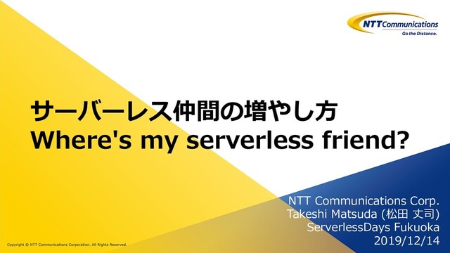 サーバーレス仲間の増やし⽅ Where's my serverless friend? NTT Communications Corp. Takeshi Matsuda