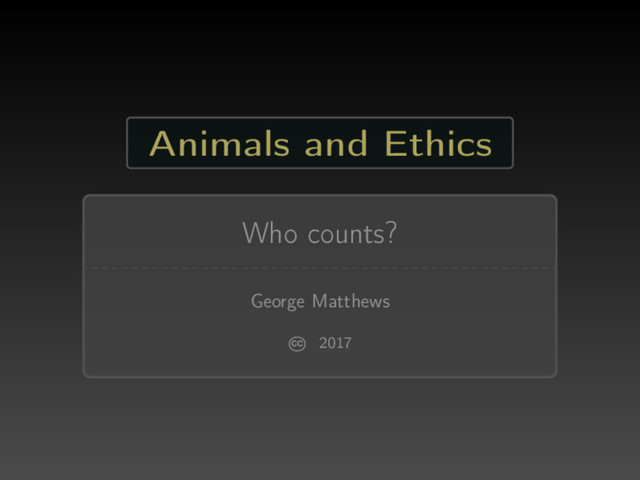 . ! We are all part of one big family. ! Many animals have complex social relations. ! We identify with them and value their companionship. ! They are useful as lab test subjects. ! They can be forced to work for us and entertain us.