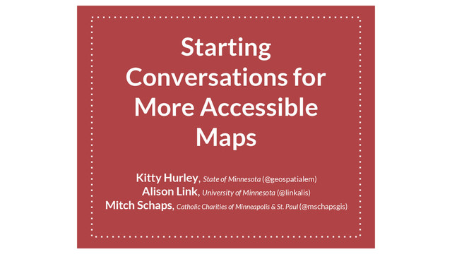 Presented by: Kitty Hurley, Alison Link, and Mitch Schaps at the 2015 NACIS Conference in Minneapolis, Minnesota.
