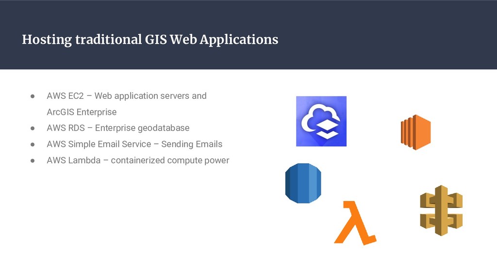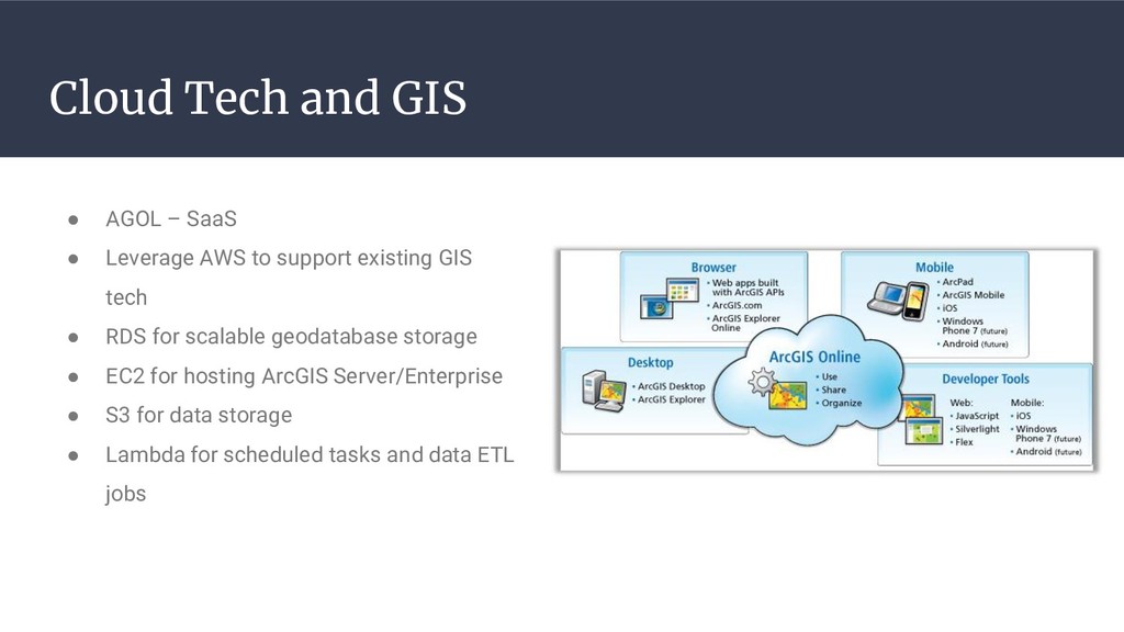 cost effectiveness, for leveraging Amazon Web Service (AWS) cloud technologies to enhance the capabilities of the Esri