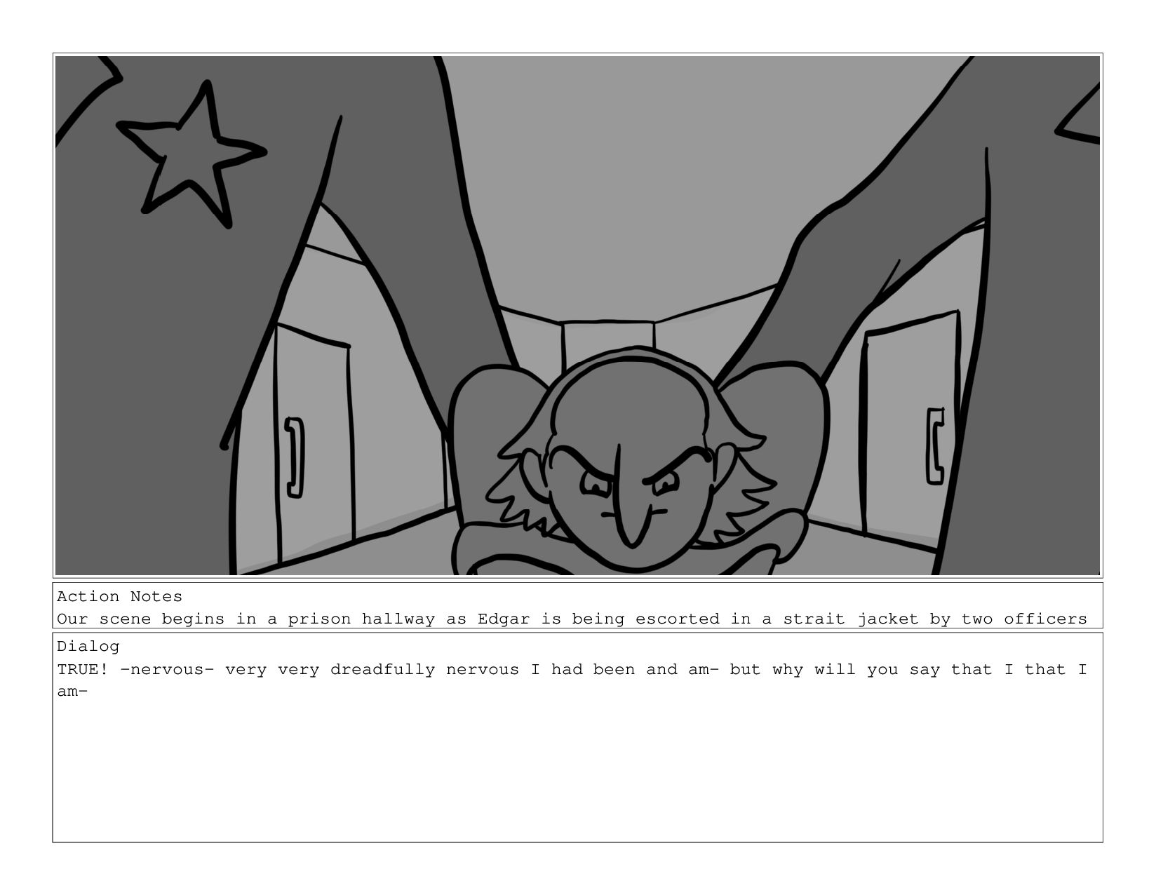Edgar is being escorted in a strait jacket by two officers Dialog TRUE! -nervous- very very dreadfully nervous I had been and am- but why will you say that I that I am-