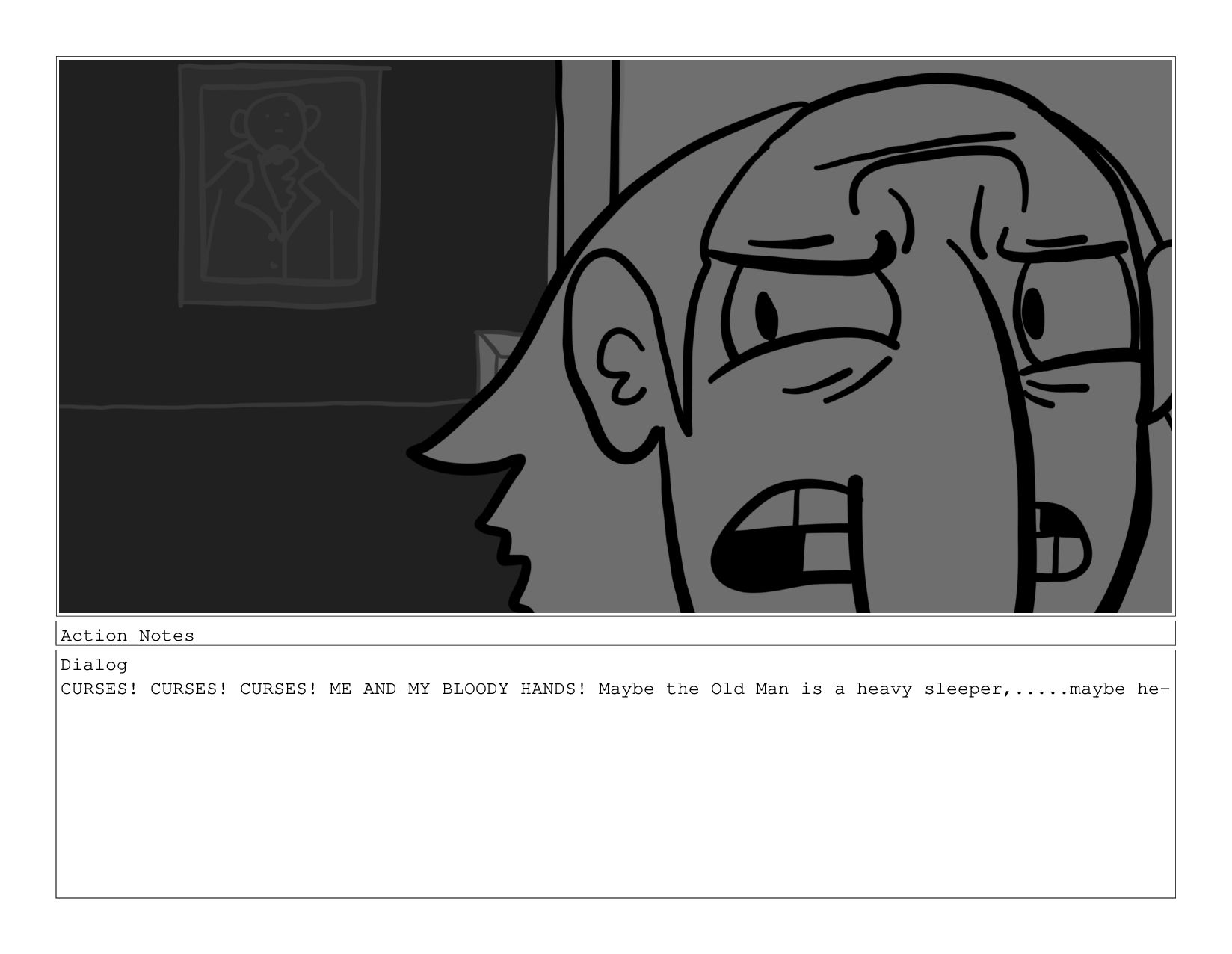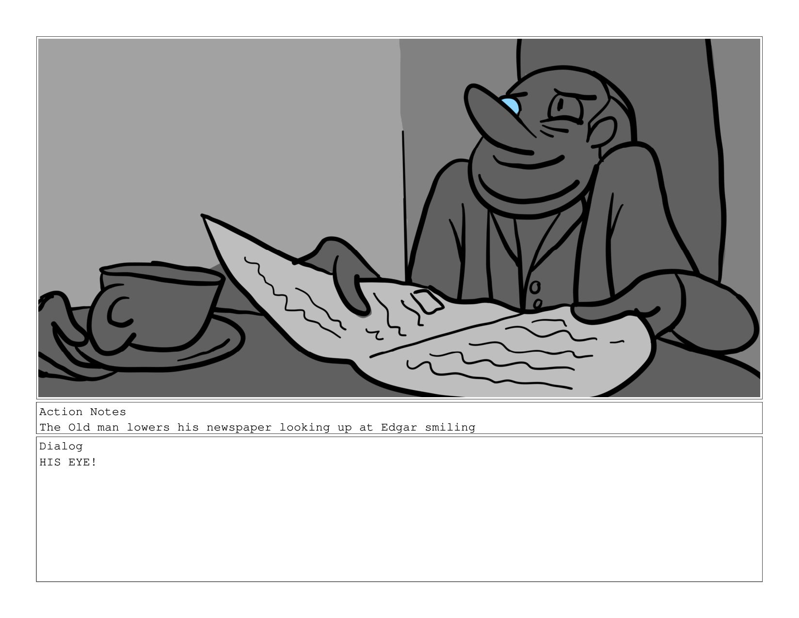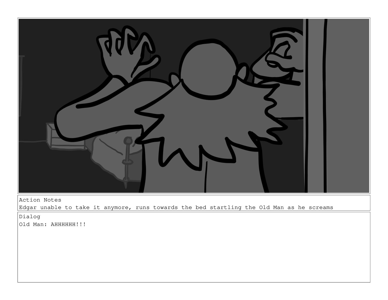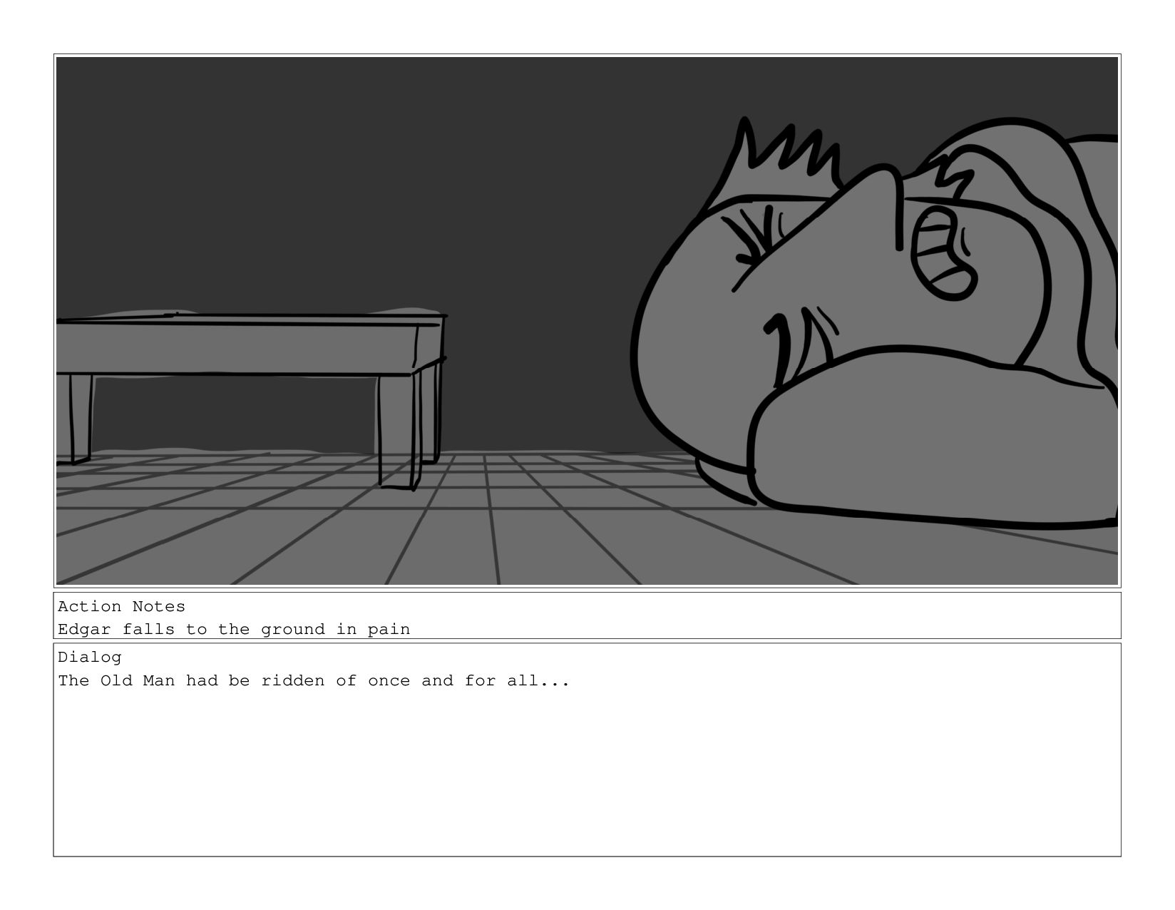 eye...The Old Man lies lifeless as Edgar is shown to be lying atop him staring at the man he once served. Dialog Finally...(breaths heavily) the old man and his wretched vulture eye......are gone