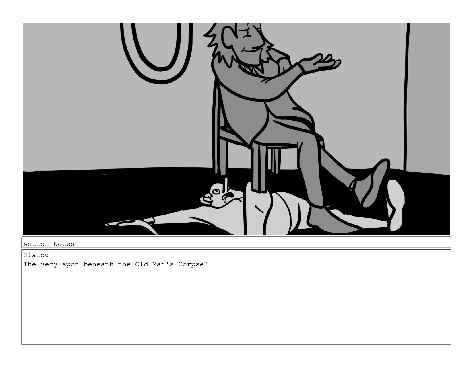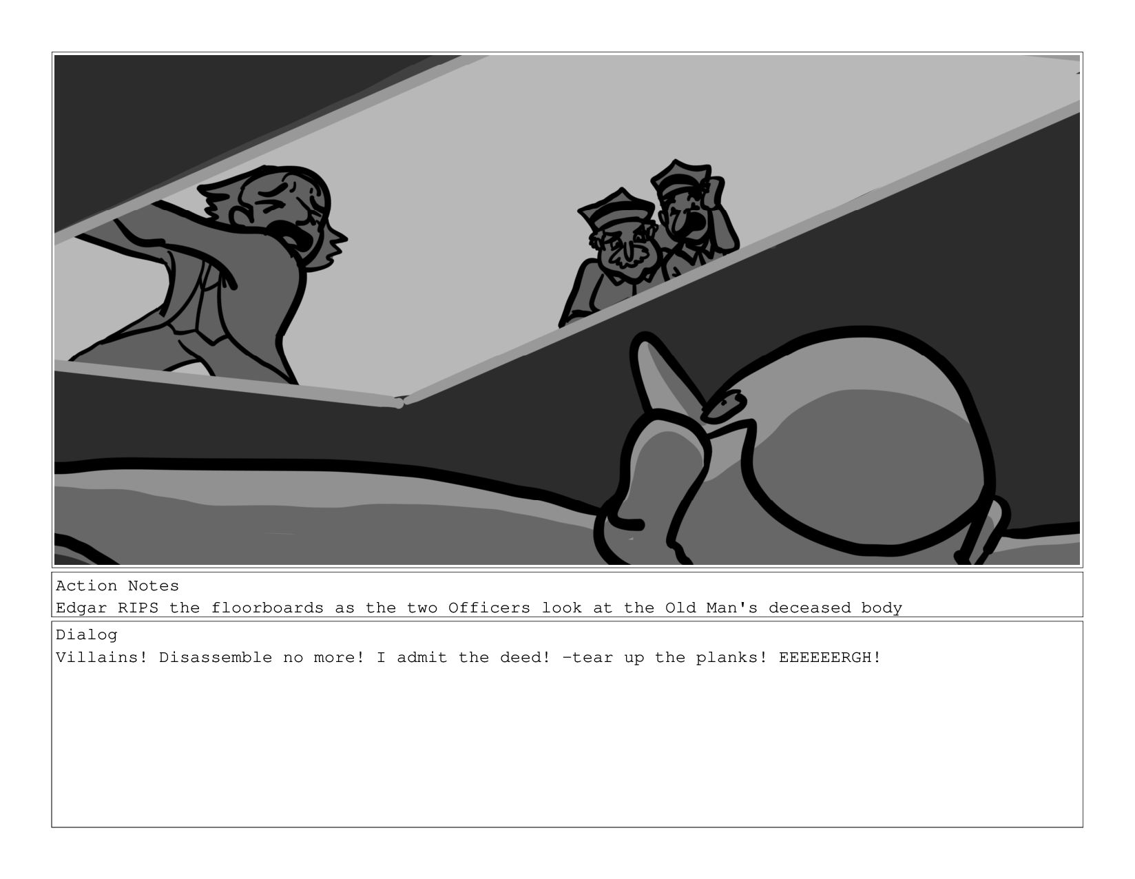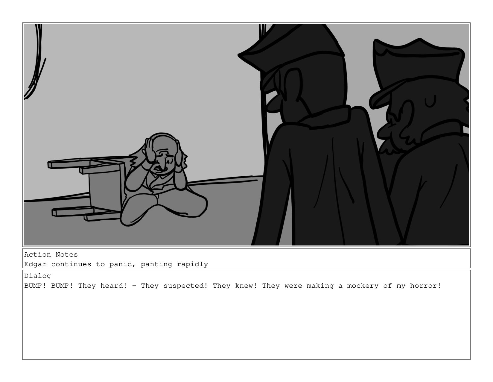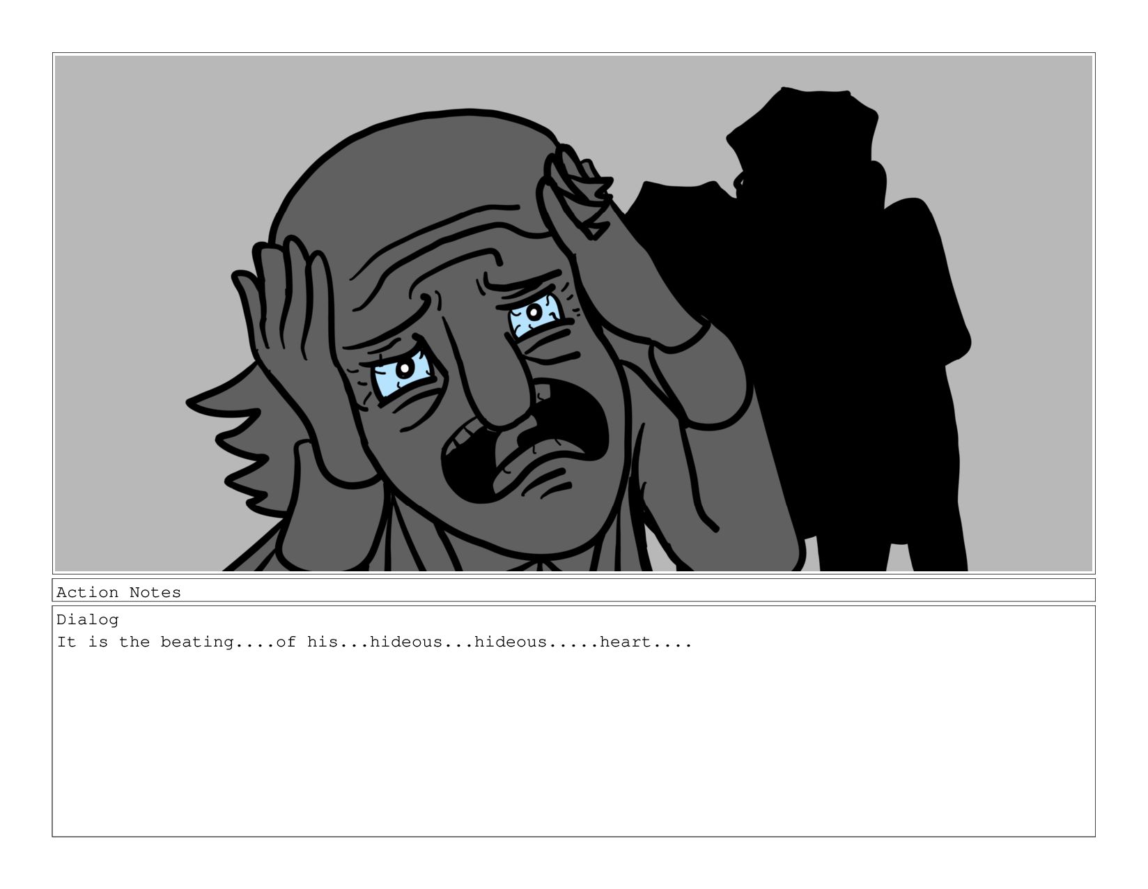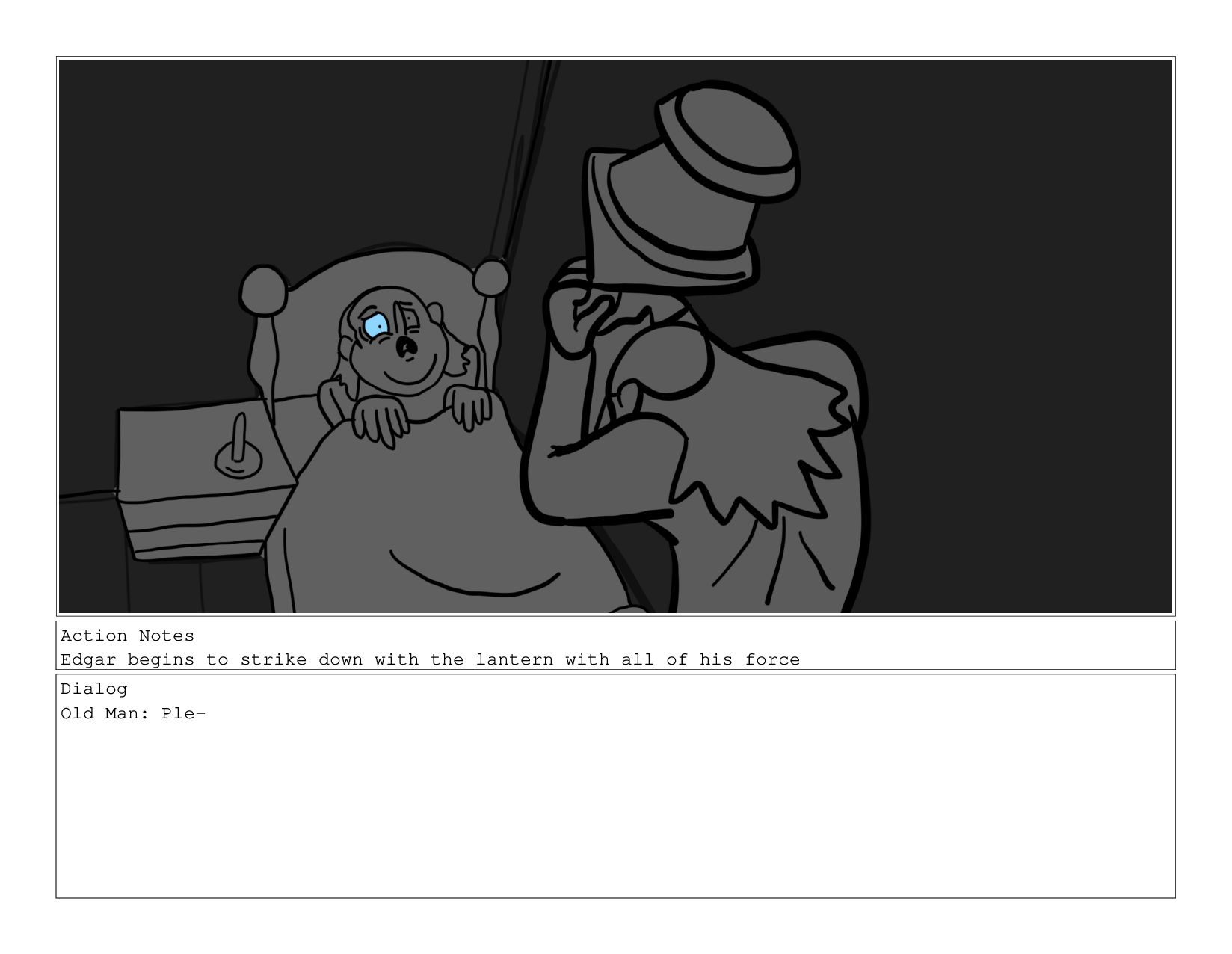 eye...The Old Man lies lifeless as Edgar is shown to be lying atop him staring at the man he once served. Dialog Finally...(breaths heavily) the old man and his wretched vulture eye......are gone