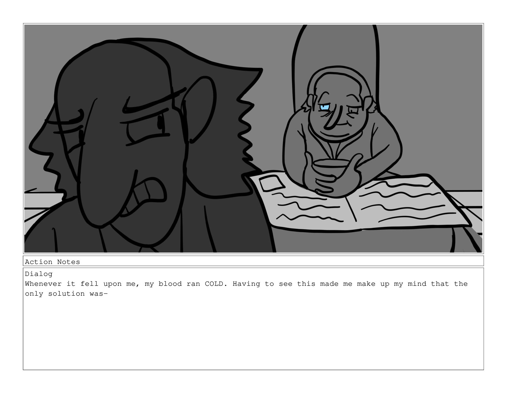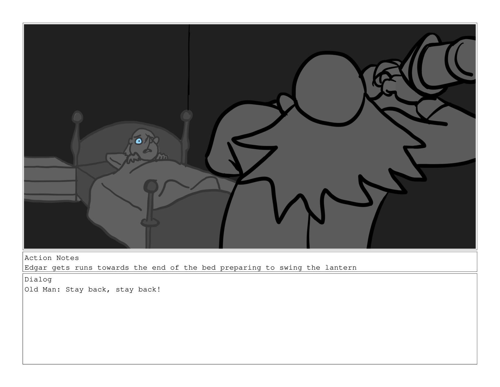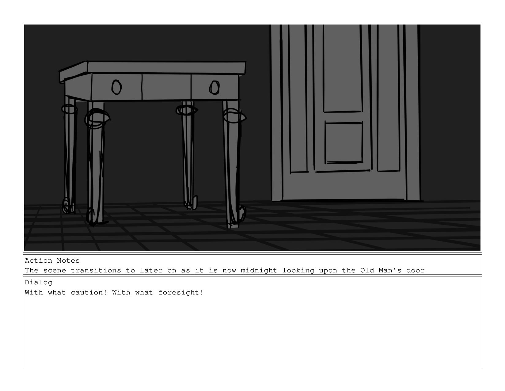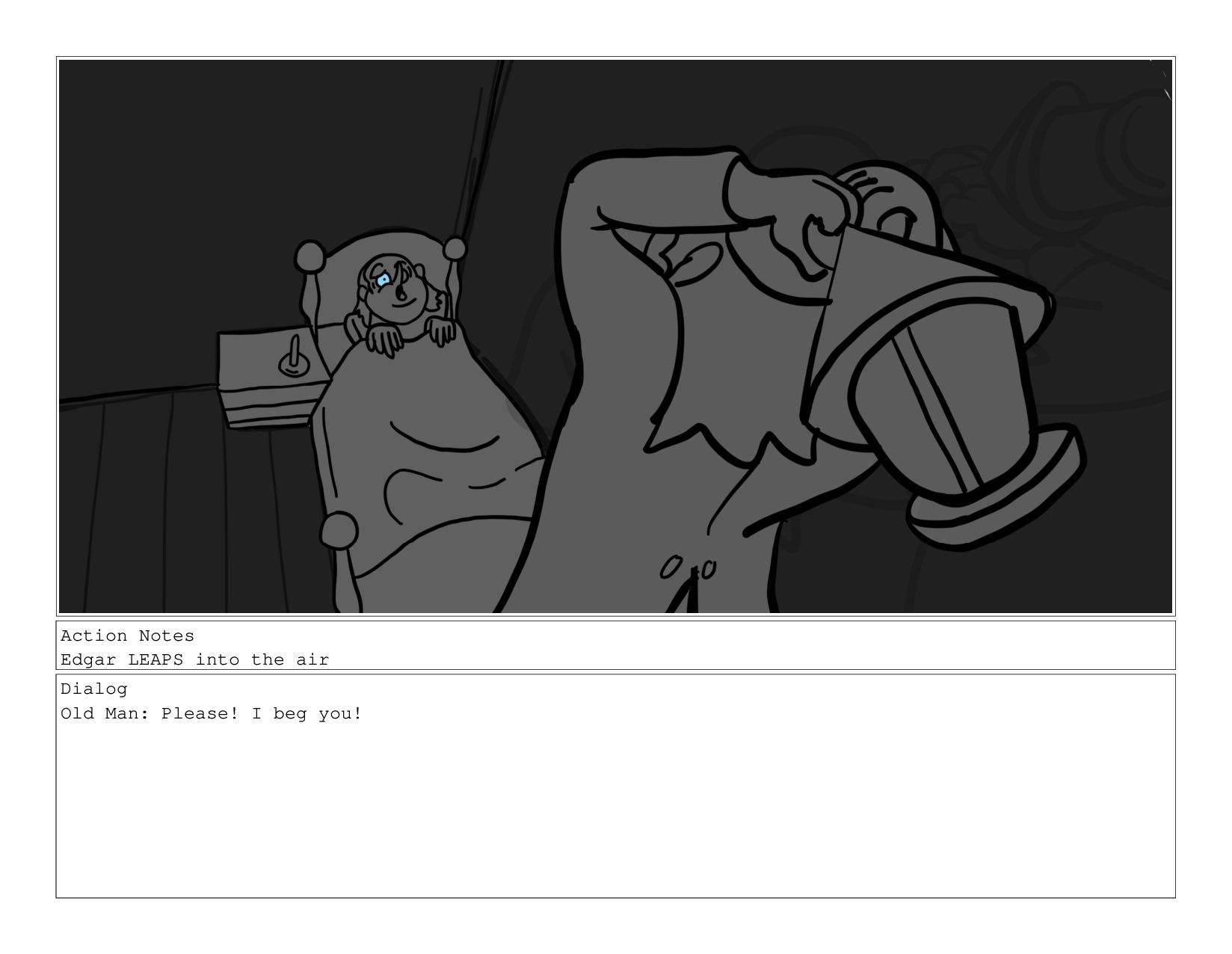 eye...The Old Man lies lifeless as Edgar is shown to be lying atop him staring at the man he once served. Dialog Finally...(breaths heavily) the old man and his wretched vulture eye......are gone