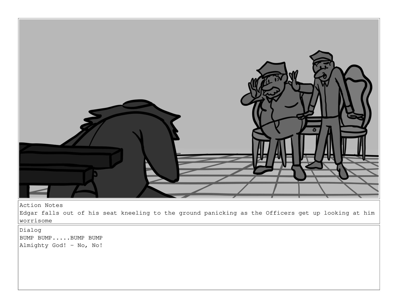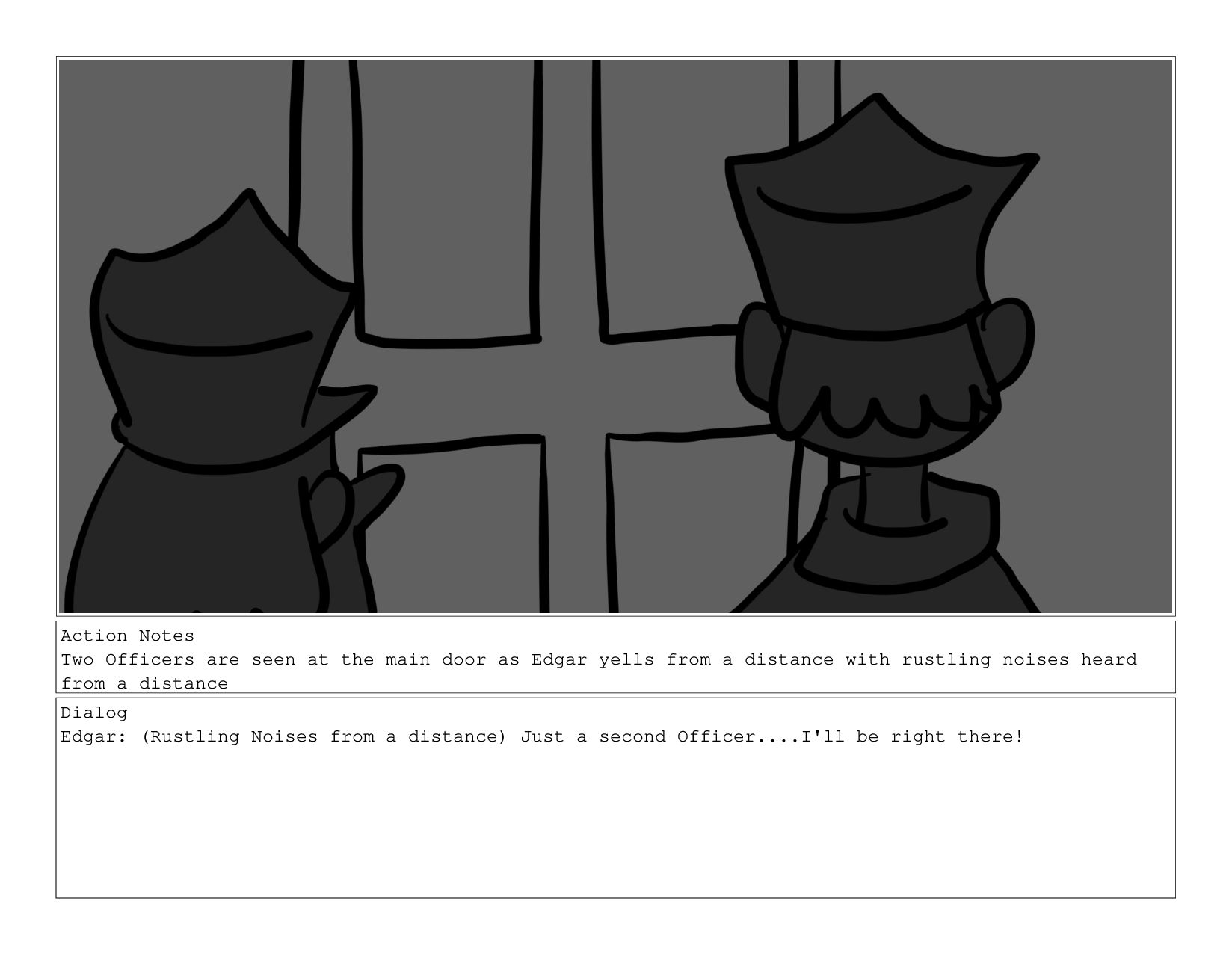 as Edgar yells from a distance with rustling noises heard from a distance Dialog Edgar: (Rustling Noises from a distance) Just a second Officer....I'll be right there!