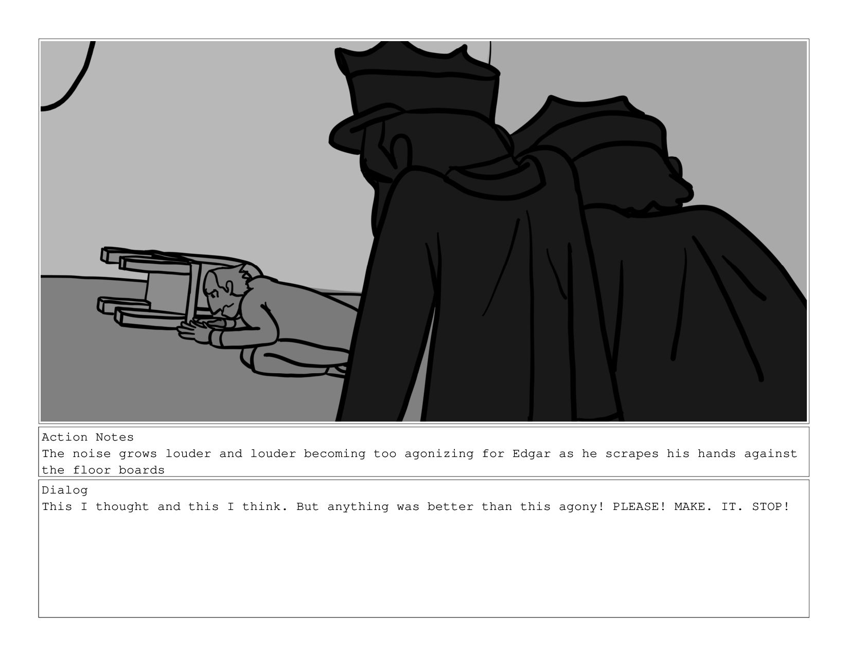 agonizing for Edgar as he scrapes his hands against the floor boards Dialog This I thought and this I think. But anything was better than this agony! PLEASE! MAKE. IT. STOP!