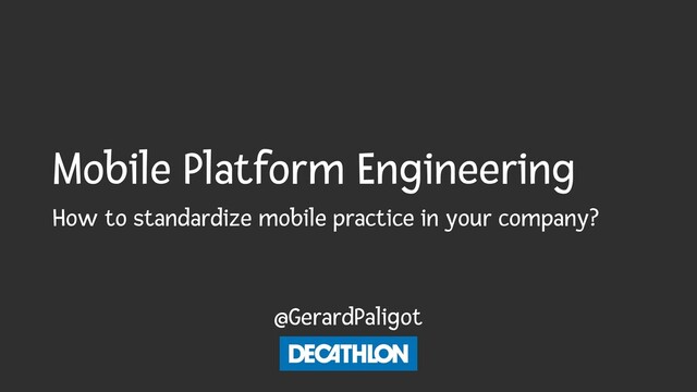 Mobile Platform Engineering @GerardPaligot How to standardize mobile practice in