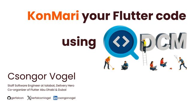 Inspired by Marie Kondo’s KonMari Method, this talk explores organizing and maintaining Flutter codebases using DCM (Design Code Metrics).