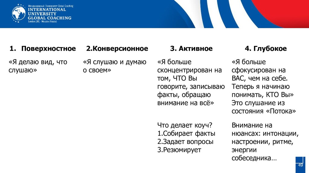 в основе Коучинга. Впервые концепция изложена в книге «Внутренняя игра в теннис» (The Inner Game of Tennis), изданной в 1974 г. «Суть всего того, что я узнал, исследуя Внутреннюю игру, можно описать одним предложением: я нашел более удачный путь к переменам» Джон Уитмор (John Whitmore) Автор книги «Коучинг высокой эффективности», изданной в 1992 г. Развил идеи Т.Голви в применении к бизнесу и менеджменту. «Мы более похожи на желудь, который содержит в себе весь потенциал, чтобы стать могучим дубом» Томас Дж.Леонард (Thomas J.Leonard) Основатель Университета Коучей (Coach University, Международной Федерации Коучей (ICF), Международной ассоциации сертифицированных коучей (International Association of Certified Coaches – IAC) и проекта CoachVille.com. «Величайшее открытие моего поколения состоит в том, что мы уникальны. Величайшее открытие следующего поколения, я надеюсь, будет в том, что мы едины»