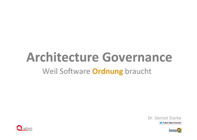 Anschliessend gebe ich Ihnen praktische Hinweise zu den qualitätsrelevanten Aufgaben von Softwarearchitekten - und wie Sie eine einfache, pragmatische und kosteneffektive Governance dafür aufsetzen können.