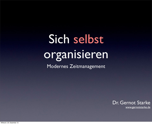 Im Vortrag möchte ich Ihnen helfen, Ihre Zeit besser in IHREM Sinne einzusetzen.