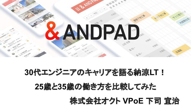 30代エンジニアのキャリアを語る納涼LT! 25歳と35歳の働き方を比較してみた 株式会社オクト VPoE 下司 宜治