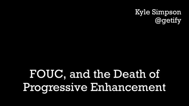 Web developers have long heralded Progressive Enhancement for delivering web experiences in "layers" (HTML, images, CSS, and then JS). It sounds so obvious and elegant, right? But FOUC (Flash of Unstyled Content), exposes the lies we've been telling ourselves and users! It's time to peel back the layers and re-envision how the web is assembled.