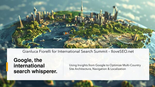 In this talk, Gianluca will present you in an actionable way how to carry out these analyses, what tools to use to scale them, and how to put them into practice by localizing the architecture, navigation (and contents) most effectively and capable of expanding the organic visibility of our multi-country websites along the potential search journeys within the Google search ecosystem.