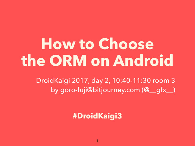 I am the author of Orma. This presentation shows how Android ORMs are designed and how to choose your favorite. Enjoy ORMs!