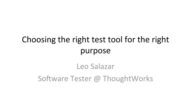 Choosing the Right Test Tool for the Right Purpose - presented by Leonor Salazar (@leonor_salazar) at the November Girl Geek Dinner Meetup hosted by Atlassian, Sydney.