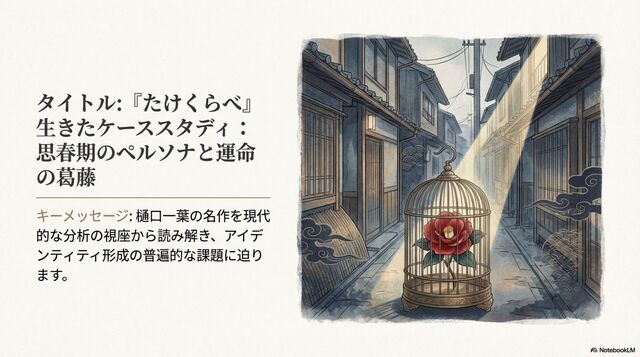NotebookLMでテスト的に作成した樋口一応「たけくらべ」の解説スライドです。