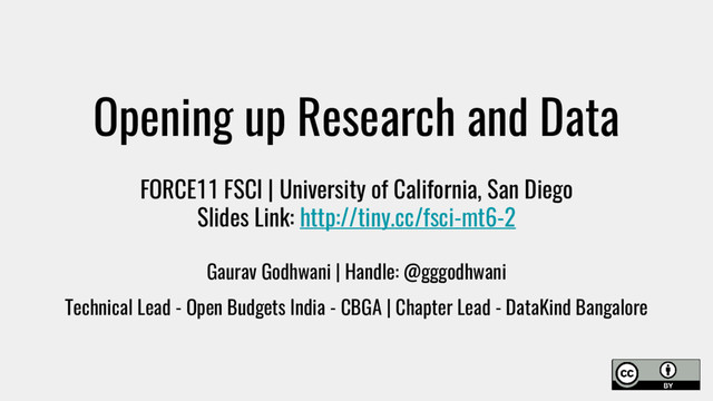 California, San Diego Slides Link: http://tiny.cc/fsci-mt6-2 Gaurav Godhwani | Handle: @gggodhwani Technical Lead - Open Budgets India - CBGA | Chapter Lead - DataKind Bangalore