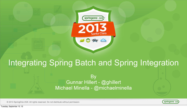 This talk is for everyone who wants to efficiently use Spring Batch and Spring Integration together. Users of Spring Batch often have the requirements to interact with other systems, to schedule the periodic execution Batch jobs and to monitor the execution of Batch jobs. Conversely, Spring Integration users periodically have Big Data processing requirements, be it for example the handling of large traditional batch files or the execution of Apache Hadoop jobs. For these scenarios, Spring Batch is the ideal solution. This session will introduce Spring Batch Integration, a project that provides support to easily tie Spring Batch and Spring Integration together. We will cover the following scenarios: