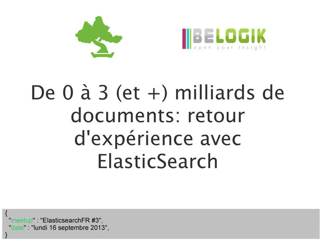 Elasticsearch est la brique centrale au coeur de la solution d'analyse de log temps réel de Belogik. Je vous propose un retour d'expérience sur notre utilisation d'un cluster Elasticsearch qui gère plusieurs milliards de documents. Nous verrons ensemble les bests practices en terme de configuration et d'optimisation des performances sur un cluster qui connait une croissance forte.