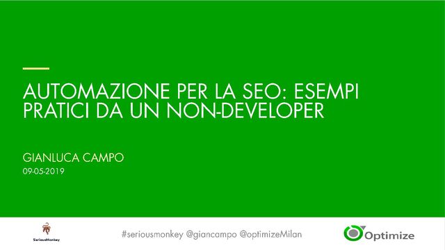 In questo intervento ho trattato l'utilizzo di strumenti e API per automatizzare attività quotidiane di analisi e monitoraggio.