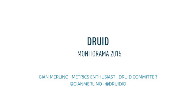 in 2012 ‣ Druid is an event stream database ‣ Low latency ingestion ‣ Ad-hoc aggregations (no precomputation) ‣ Can keep around a lot of history ‣ Community driven • 90+ contributors • In production at Yahoo!, Netflix, Metamarkets, many others