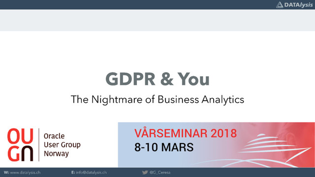 GDPR: 4 letters, an acronym being a nightmare for many companies. A fixed deadline, huge fine announced by the new regulation. For the first time companies are really required to manage their data workflows, security processes and processing. An enterprise analytical and reporting platform is clearly a key component for a GDPR compliance audit. How can you keep OBIEE under control? How can you make sure which data is used where and by who? This session will provide you with these answers.