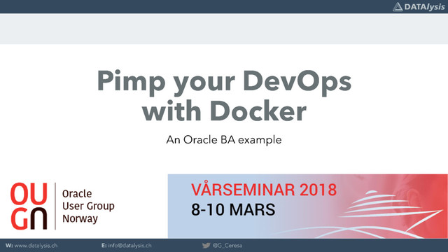 Nowadays BA development processes have adopted a more flexible and agile approach. With this major change some activities become more and more important like quickly provisioning a sandbox environment for developers right after their kick off of a new project or in a later stage being able to execute a full regression testing suite and implement continuous integration to merge the various parallel development into your prod server. At the same time the infrastructure of these enterprise tools isn't anymore a bunch of physical servers, organizations try to increase flexibility while lowering costs adopting virtual machine or, more recently, moving into containers solutions. Containers are the "next step" after standard virtual machines: the virtualization software runs as an application within the operating system instead of duplicating a full OS. As they are running within the OS they require less resources, RAM as well as storage and increase flexibility. In this session you will first be introduced to the concept of containers and, more specifically, how to run OBIEE inside a Docker container. You will then see how this solution can help you make various DevOps activities simpler while gaining in agility. Continuous Integration and Continuous Delivery being the key elements of modern DevOps and not so simple to achieve for a "old monolithic" application like OBIEE. Docker makes it possible and almost easy. Instead of having a dedicated "test server" able to run these tests in a serial mode you can execute them in parallel using containers: fire up a fresh container right after a new commit in your versioning system is detected. Run regression testing. Once done the container disappears like it was never there - thus freeing up resources - and you have the regression test output to analyse. And last but not least: all of it automated! You will see an example of an automation use case with triggers running a regression test when a new commit in Git is detected.