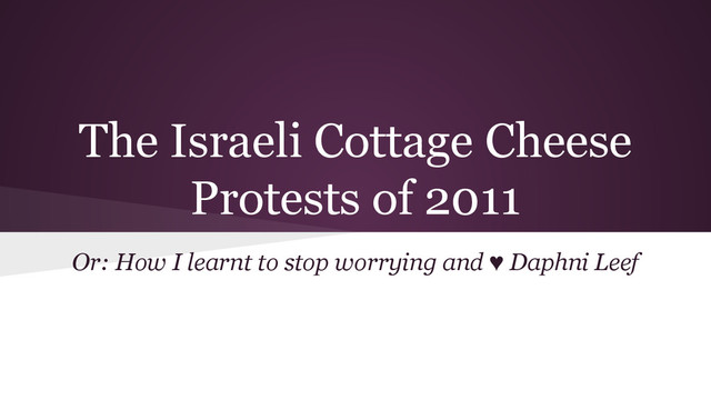 reality TV show ironically named “Your house is worth more.” In realising that even a person like herself, from a 'good' family with an honest job could not afford to live in Gush Dan where rents had risen by 49% in the past 5 years (42% of Israelis live in the Gush Dan region), she started a Facebook group inviting anyone else in the same situation to join her in a tent on Habima- Square Source: http://ittay.blogspot.co.uk