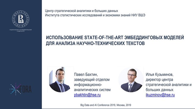 Павел Бахтин. ВШЭ. Использование state-of-the-art эмбеддинговых моделей для анализа научно-технических текстов