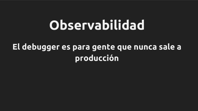 Esta charla ataca el problema de construir sistemas observables donde no existe diferencia entre debugging, logging y tracing, y como toda la instrumentación tiene que responder a las mismas necesidades en distintos ambientes.